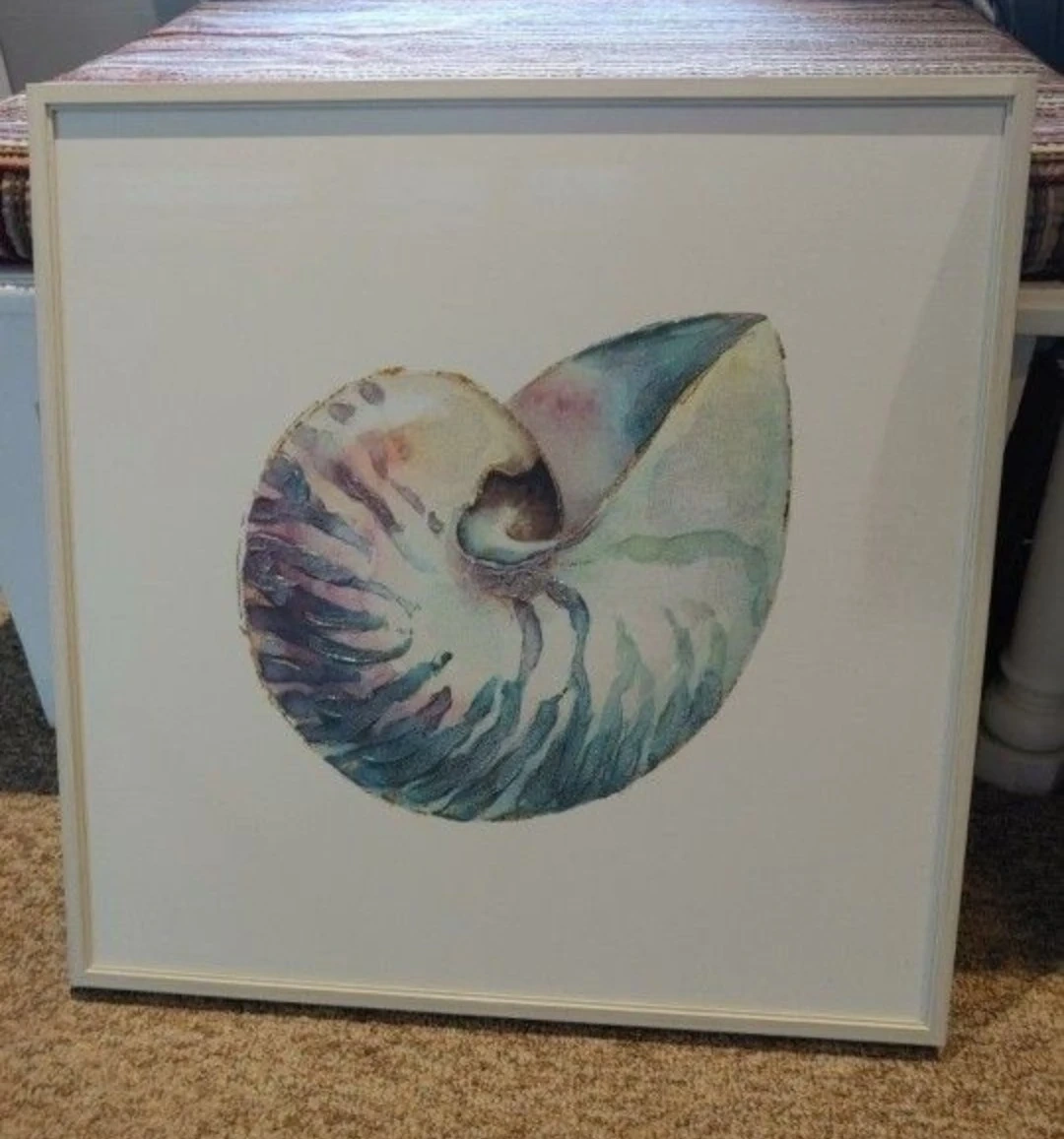 15NEW. framed she'll painting on Canvas. The artwork is mounted in a simple, clean frame. It would look great in any room!