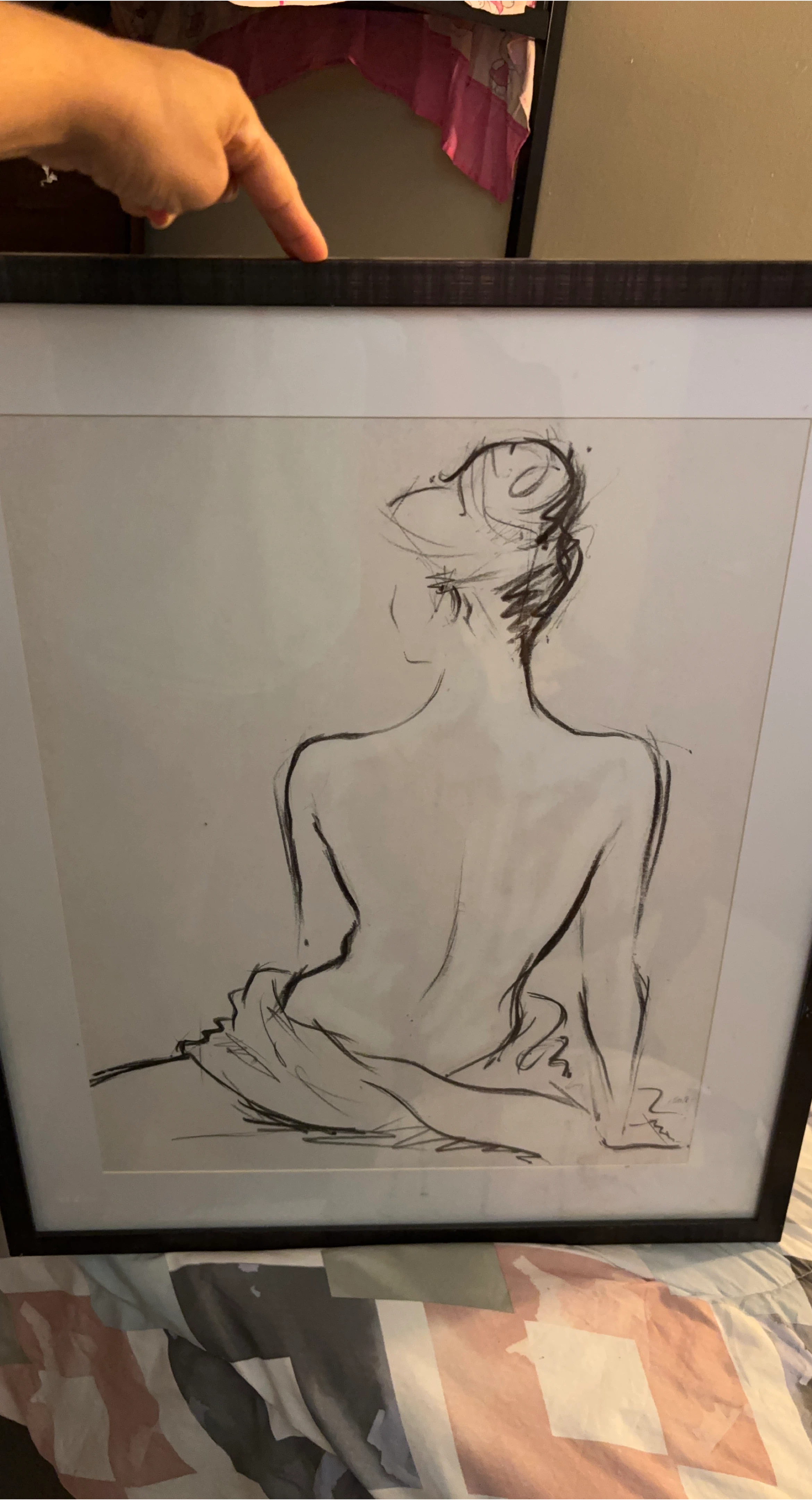 This is a framed sketch of a woman. It's a beautiful piece of art that would look great in any home!