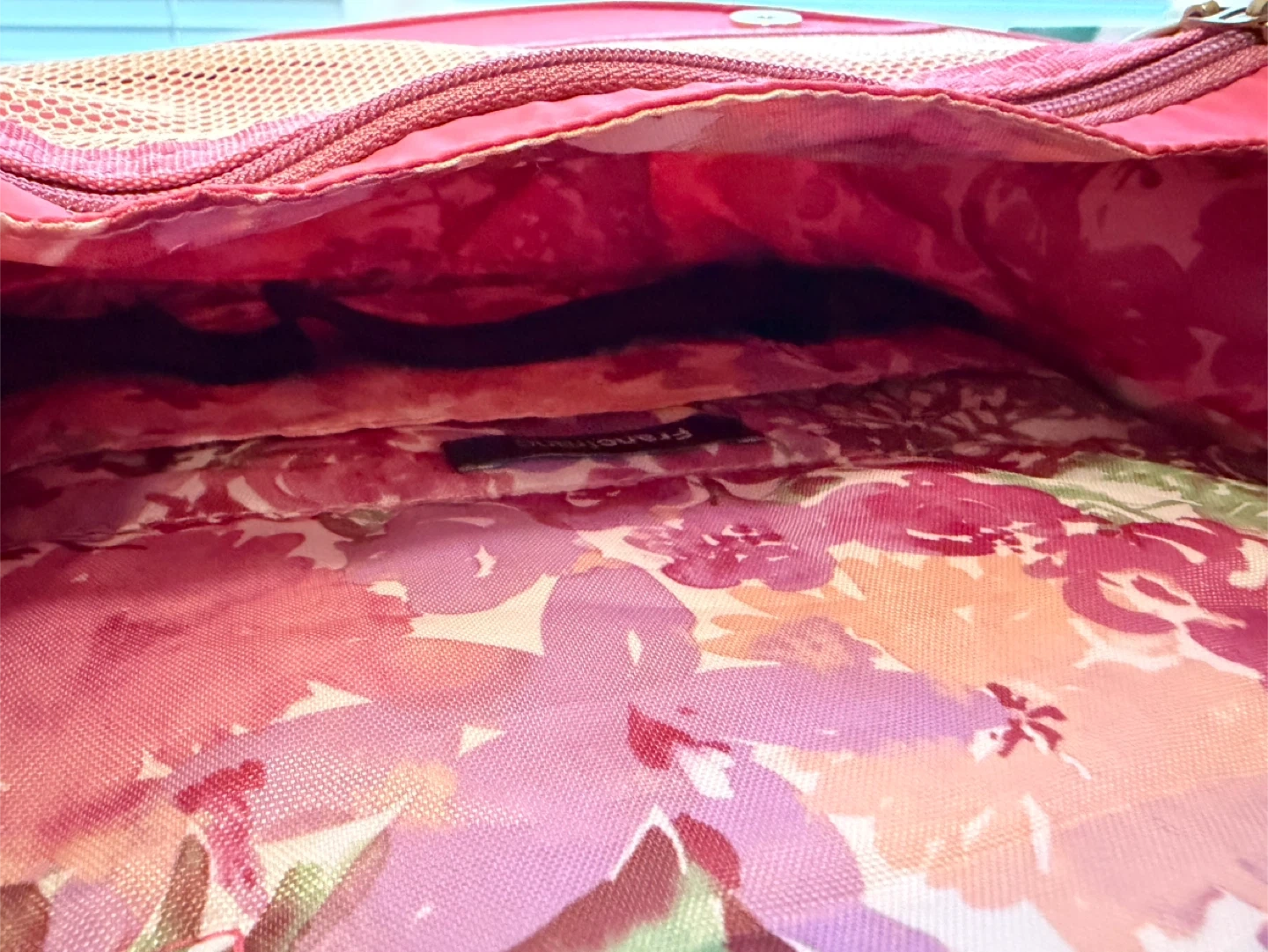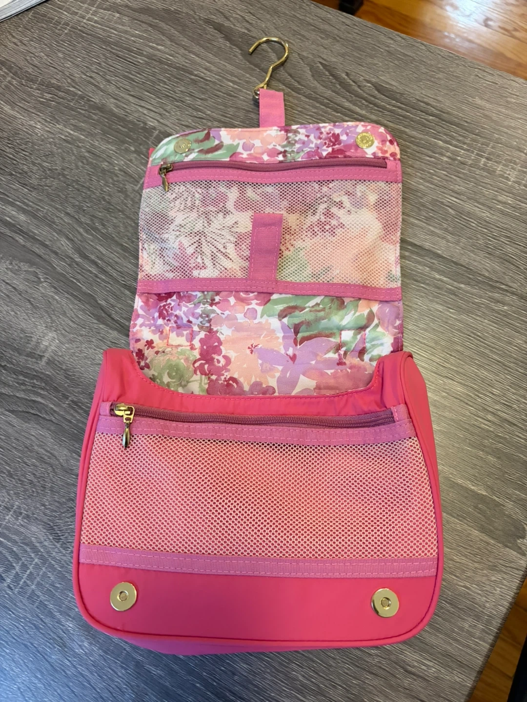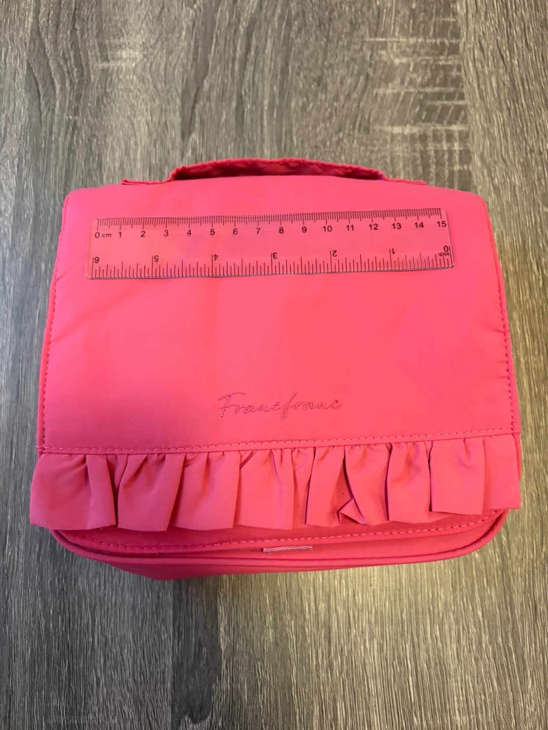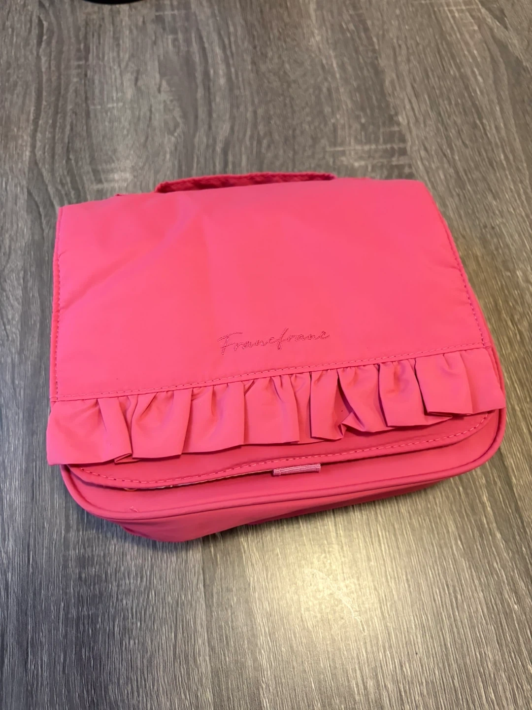 76Here's a cute pink hanging toiletry bag from Franc Franc! It's perfect for travel or keeping your bathroom organized. The bag has a hook for easy hanging and multiple compartments to store all your essentials. It's in great condition