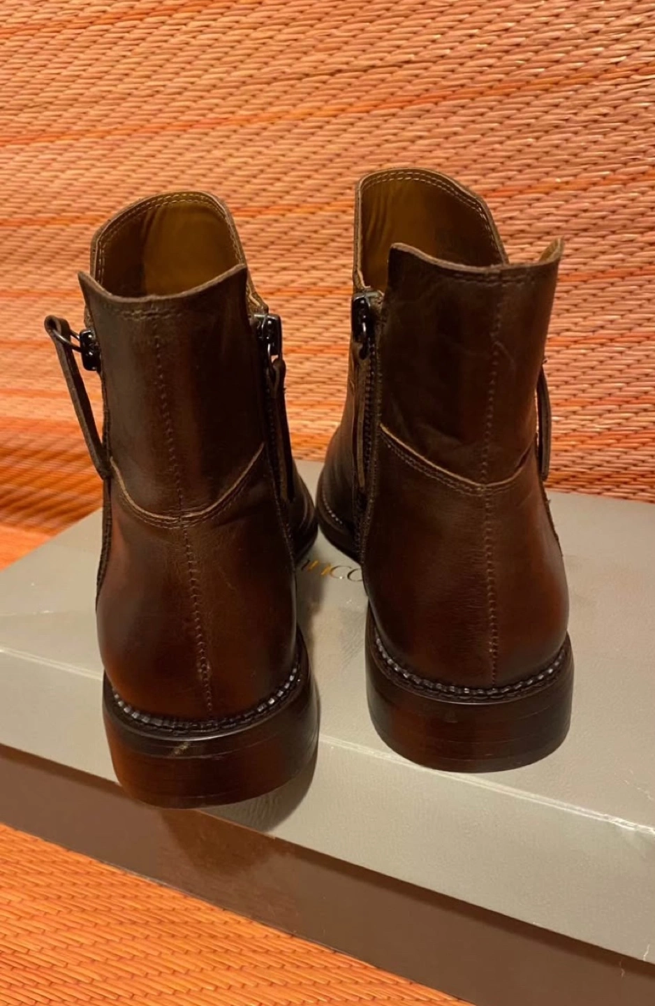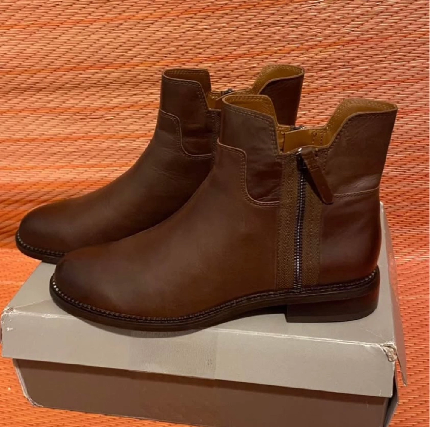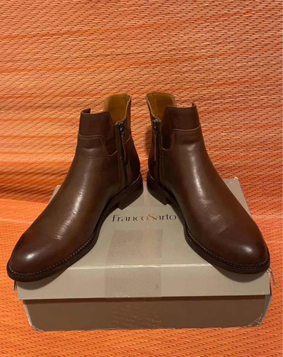 Women's brown leather ankle boots. Side zippers. New in box.