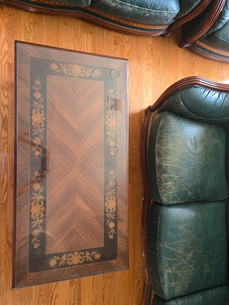 31Selling a 'Fratelli Cattaneo' coffee table, made in Italy. It features a beautiful wood design and a glass top. Perfect for adding a touch of elegance to your living room! MOVING SALE, PICK UP ONLY