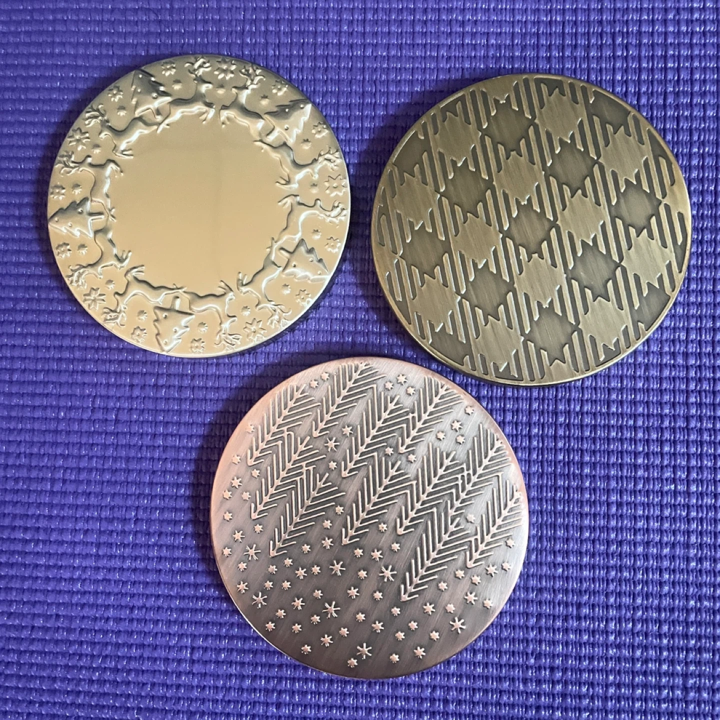 Giving away 3 pcs of three decorative metal lid for candle jars. Use for coasters!