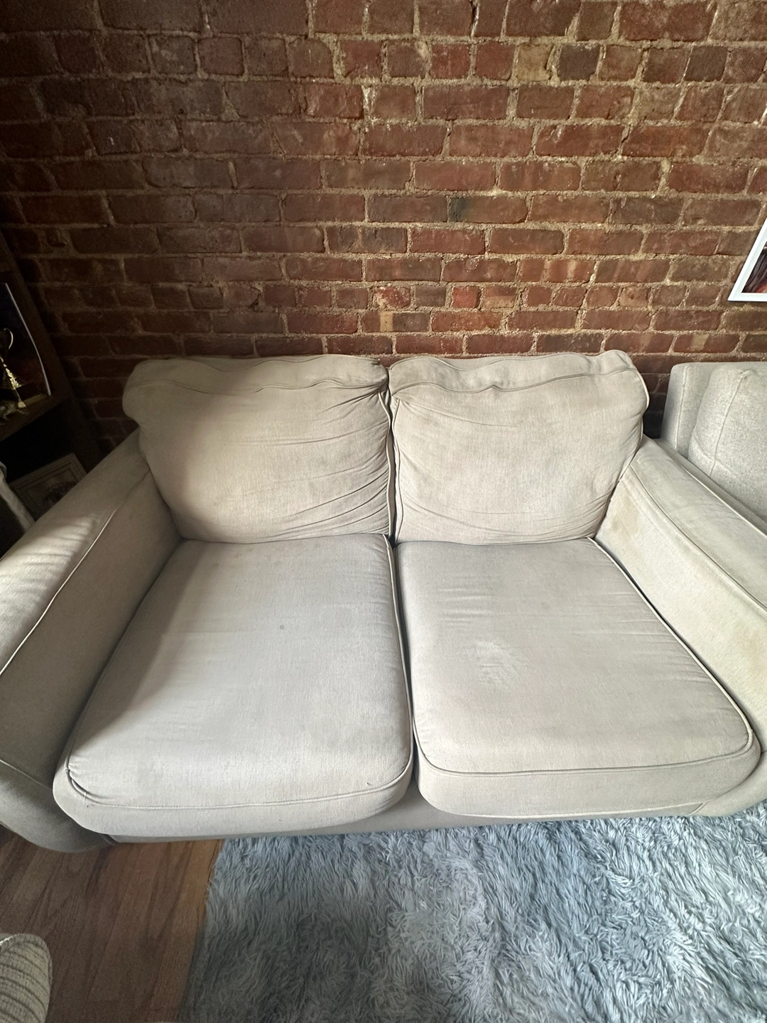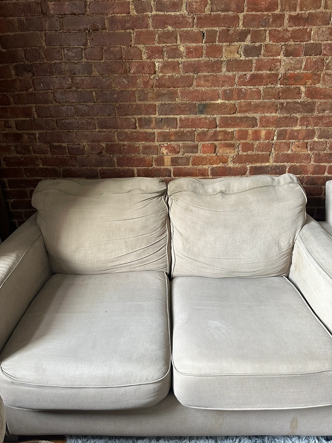 43FREE Couch Size: 59 x 31 x 32 in Location: Pick up in Sugarhill, Manhattan (2 mins walk from closest subway) Has been recently professionally cleaned. Can include a couch cover. Super comfortable, however, we just moved and don't need the extra couch anymore. Building is in the second floor with no elevator. Although it's not very heavy, would recommend 2 people to come move it. Description: Beige couch, free couch, living room furniture, free sofa, beige sofa, home decor, free furniture, comfy couch, stylish couch, free living room sofa, neutral color couch, beige living room set, free beige sofa, cozy couch, beige sectional, free seating, free home furniture, classic couch, free beige furniture, free couch for pickup.