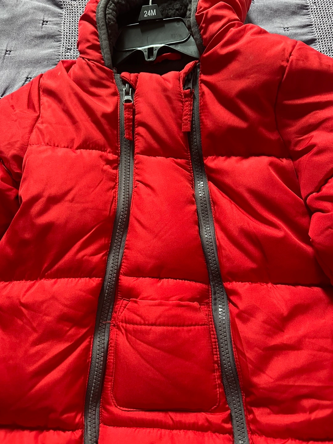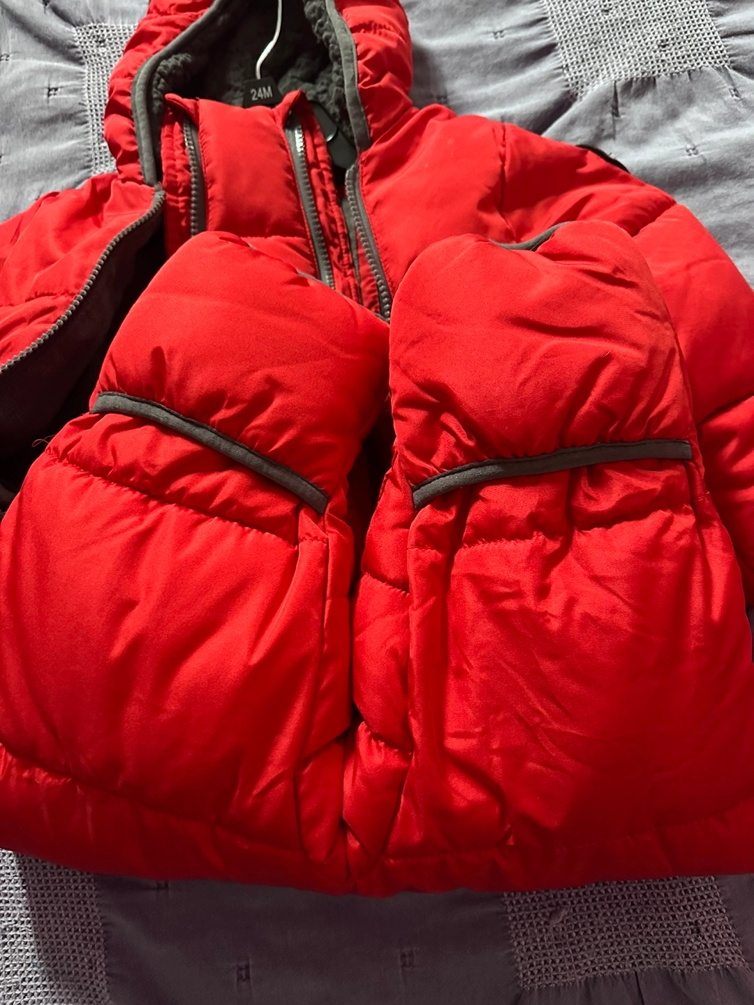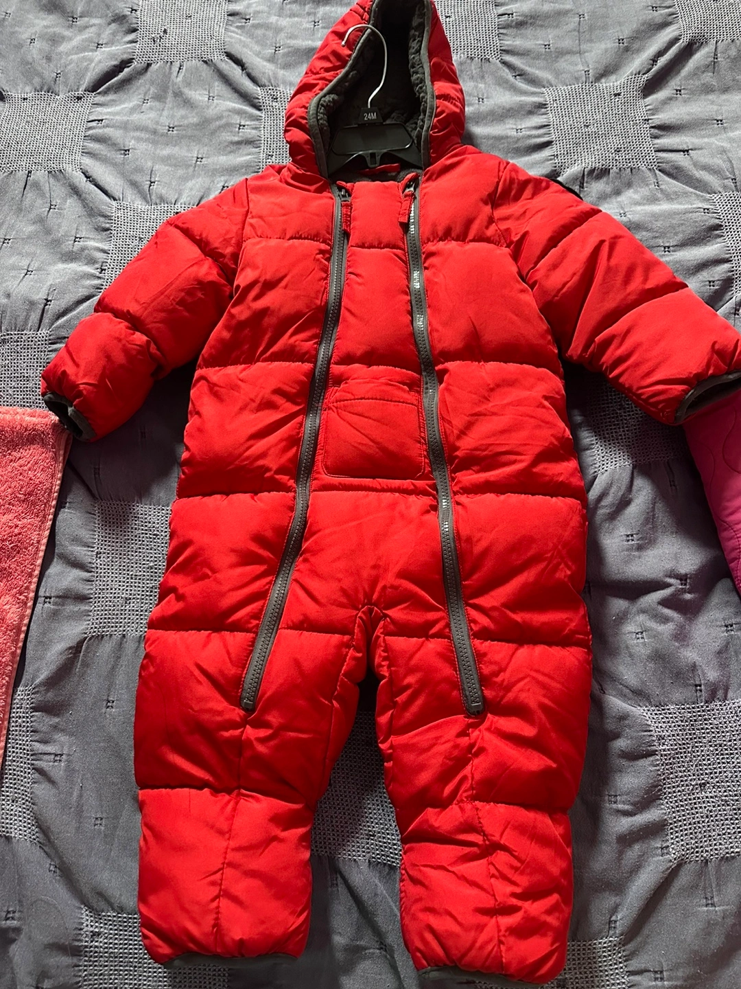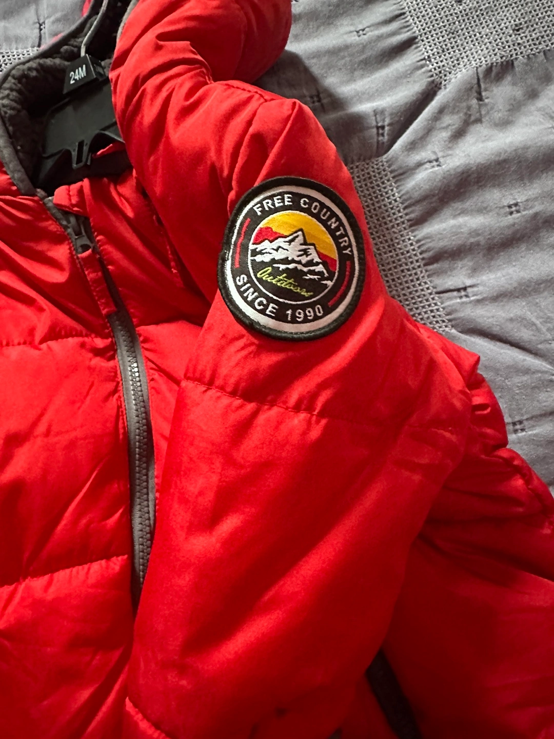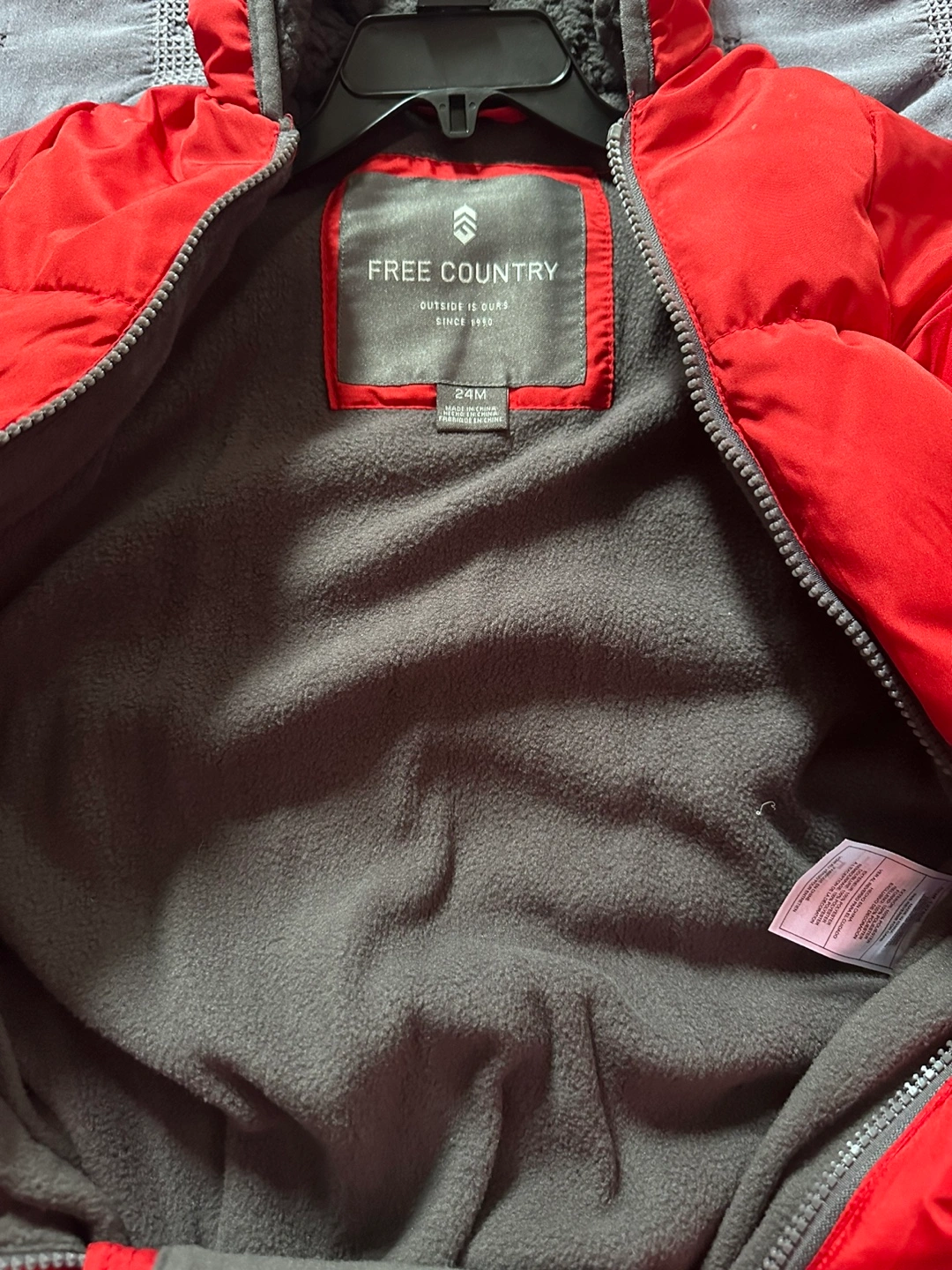 108I'm selling a Free Country red snowsuit in size 24M. It's in great condition and ready for winter adventures! The snowsuit features a cozy fleece lining and a durable outer shell to keep your little one warm and dry.