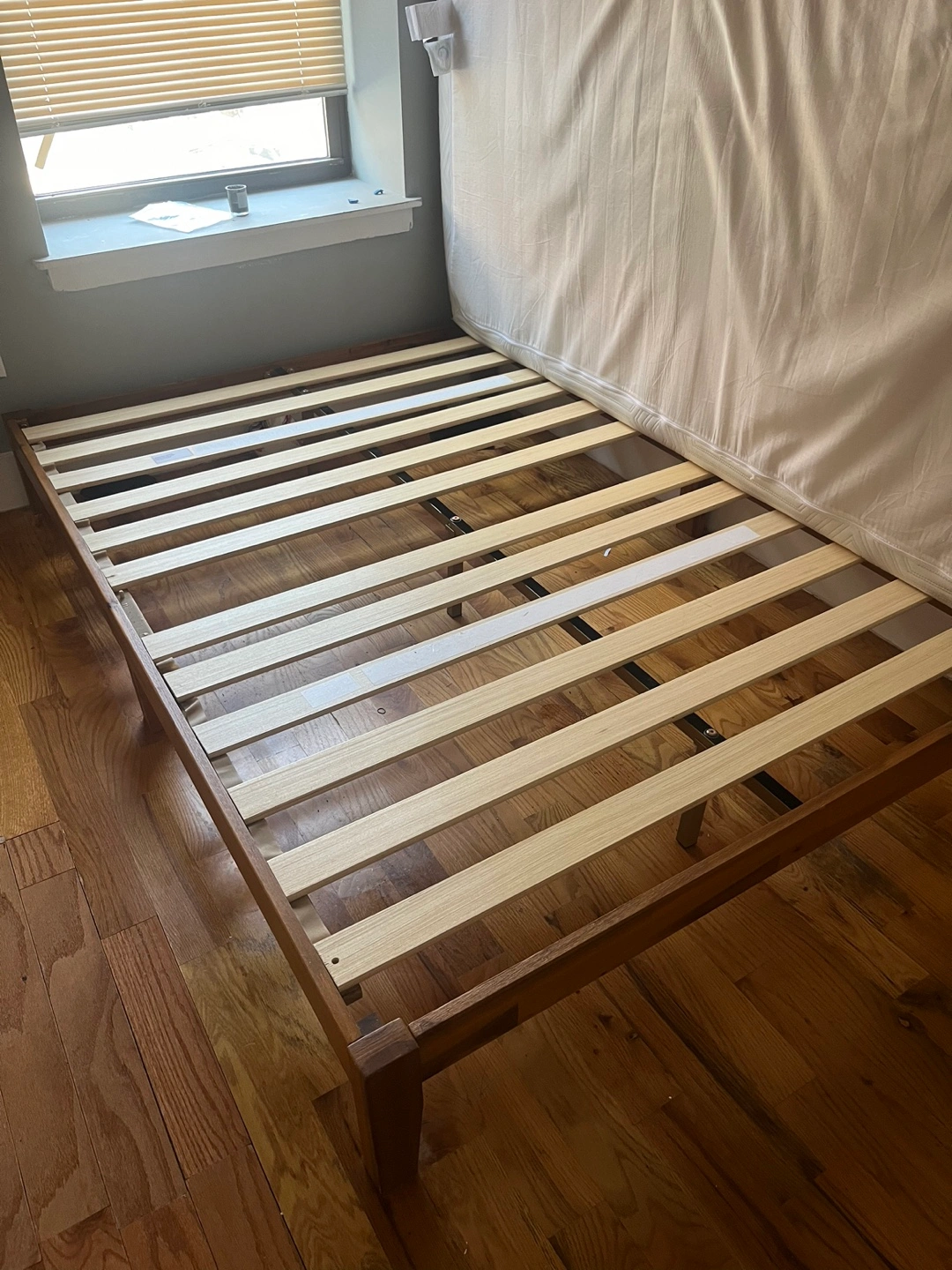 25sturdy wooden Full bedframe in great condition. used for 1 year. Mattress is up for grabs too but it’s pretty beat up. pickup in Bedstuy (dekalb & throop). 1 flight walk up, gonna try & take the frame apart today. she goes to the streets tomorrow morning so hmu if you’re interested!
