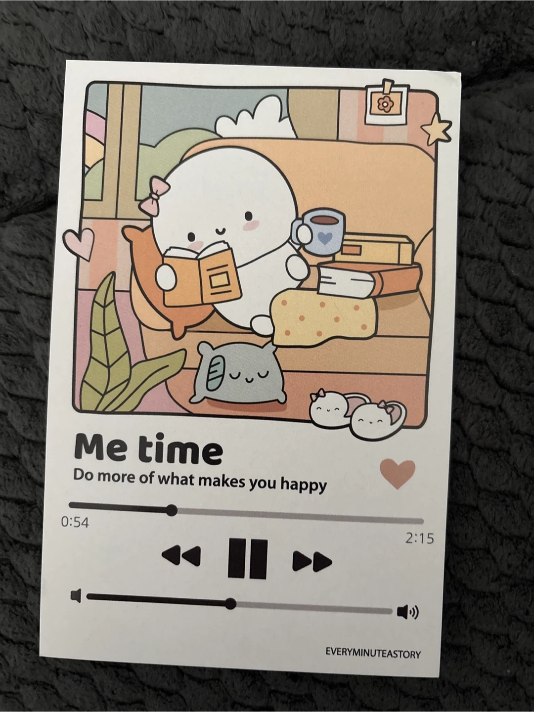 Giving away a cute 'Me Time' card from Everyminutestory!