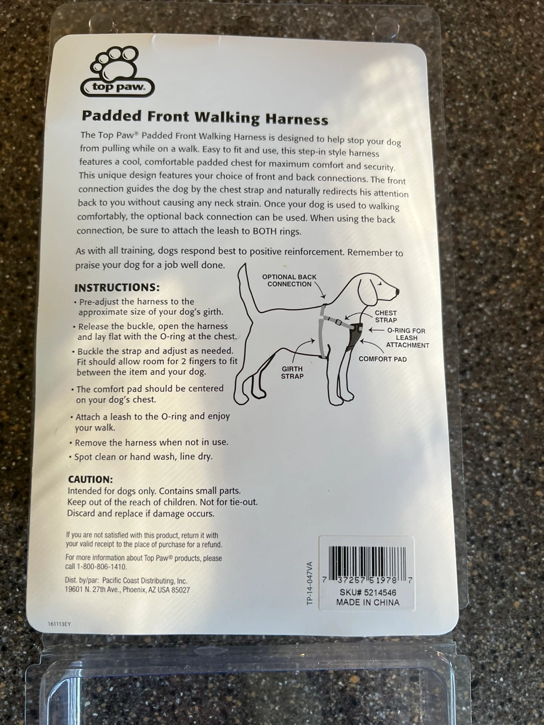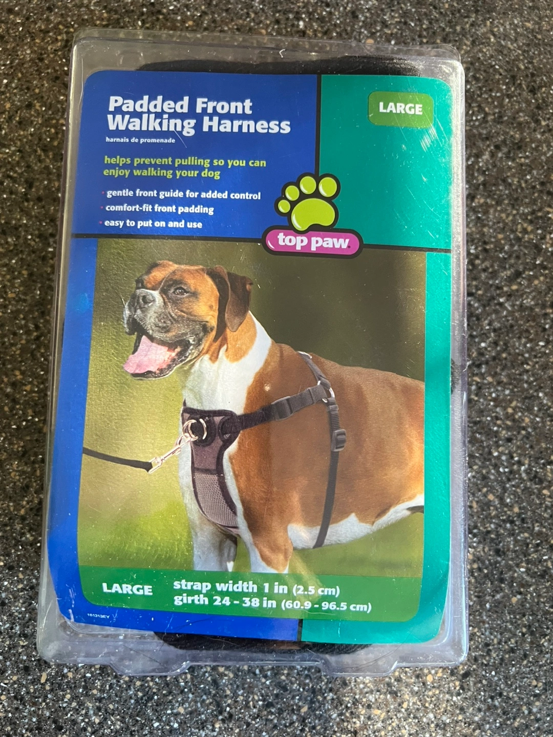 Free Recycling Listing! Top Paw Padded front walking harness, size large. Helps prevent pulling. Has a gentle front guide for added control, comfort-fit front padding and is easy to put on and use. I used it once on my dog and he didn’t like it and never return it to the store. #freecycle