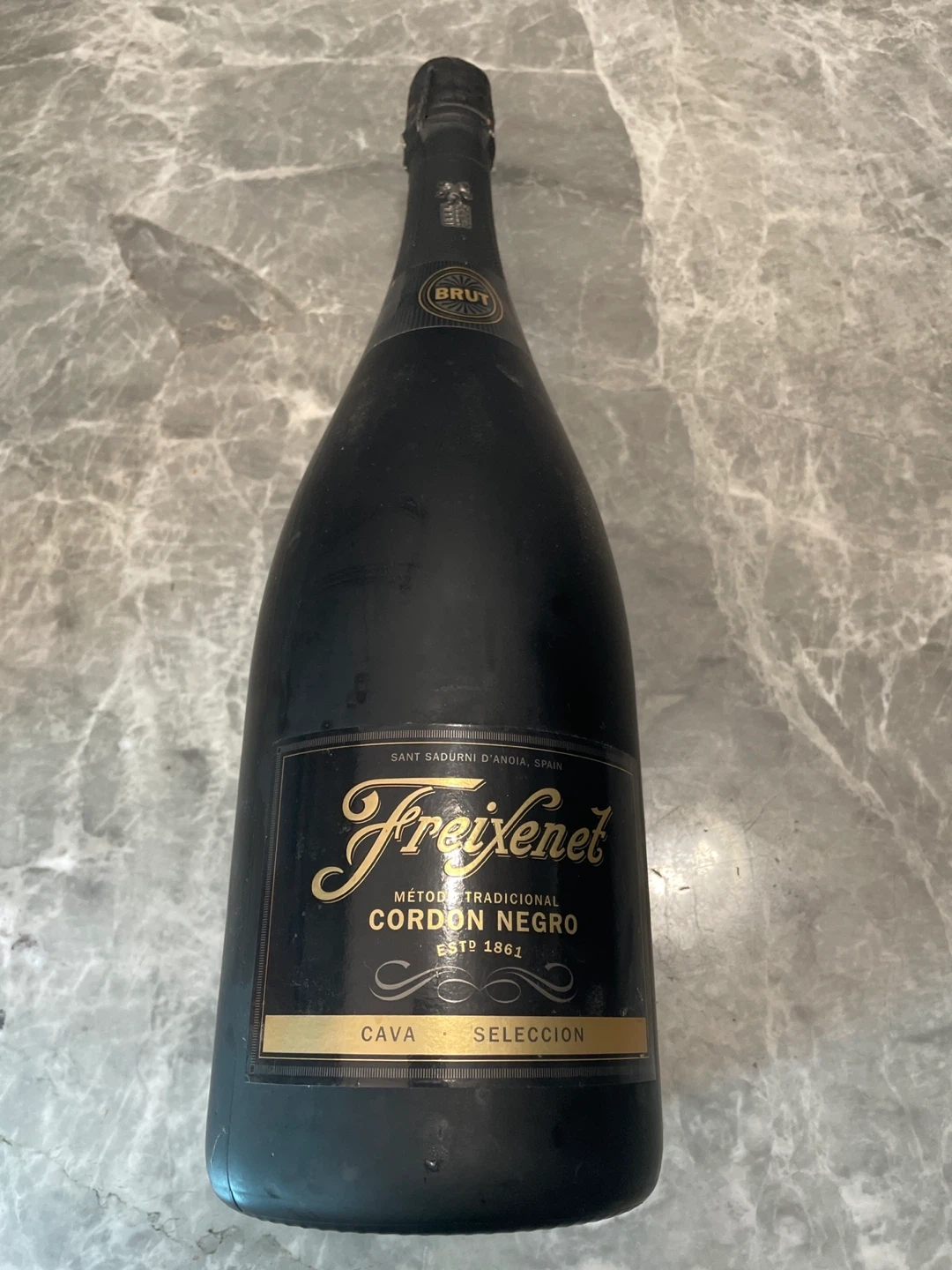 Selling a bottle of Freixenet Cordon Negro Brut Cava. It's a traditional Spanish sparkling wine, perfect for celebrations or just a nice evening