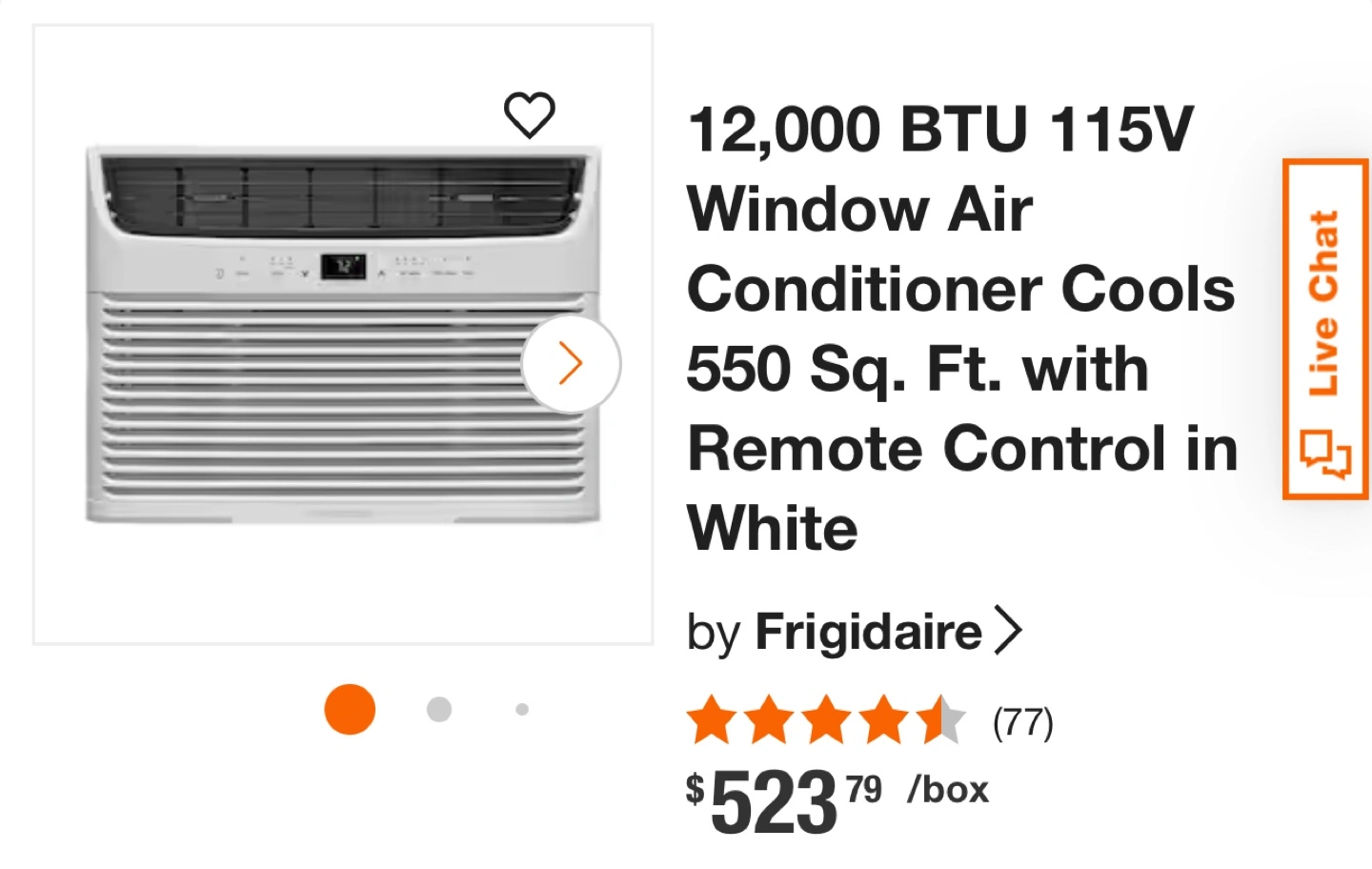 Selling a Frigidaire 12,000 BTU 115V window air conditioner. It cools up to 550 sq ft and comes with a remote control. Originally bought for 520$