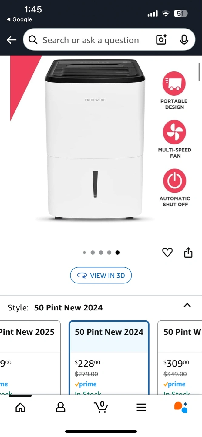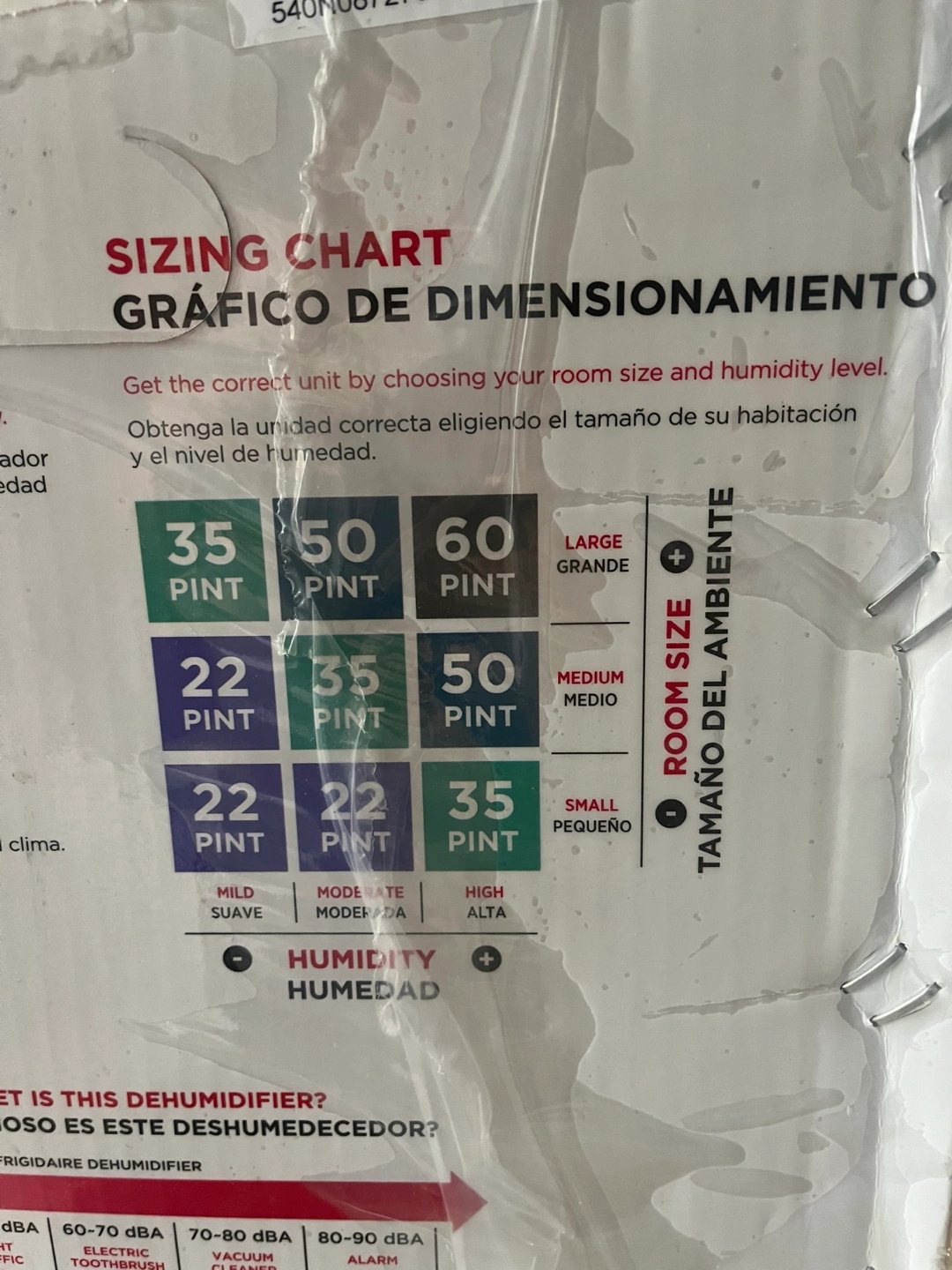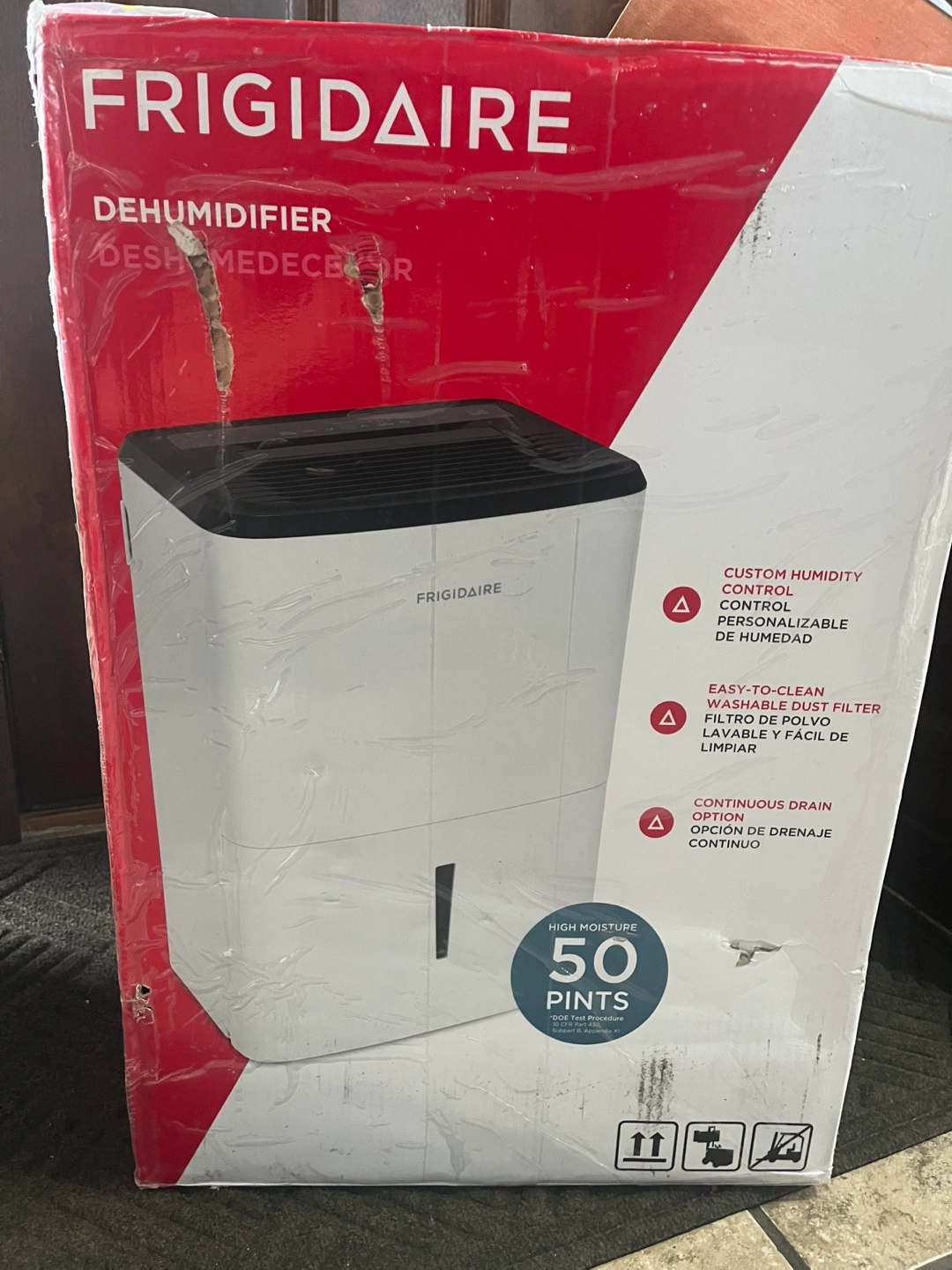 New Frigidaire dehumidifier. 50 pint capacity. Features multiple fan speeds