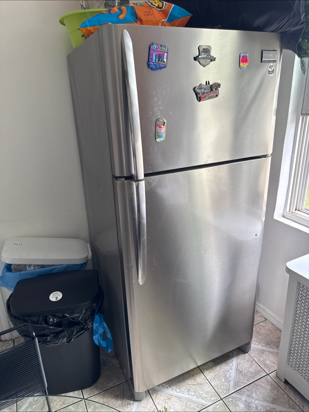 Selling a Frigidaire Gallery refrigerator in stainless steel. It's a great addition to any kitchen. It has some wear and tear, but is in good working condition.