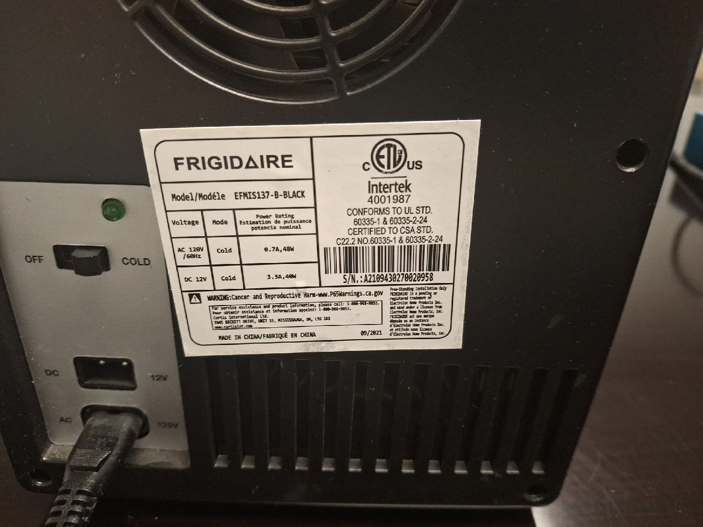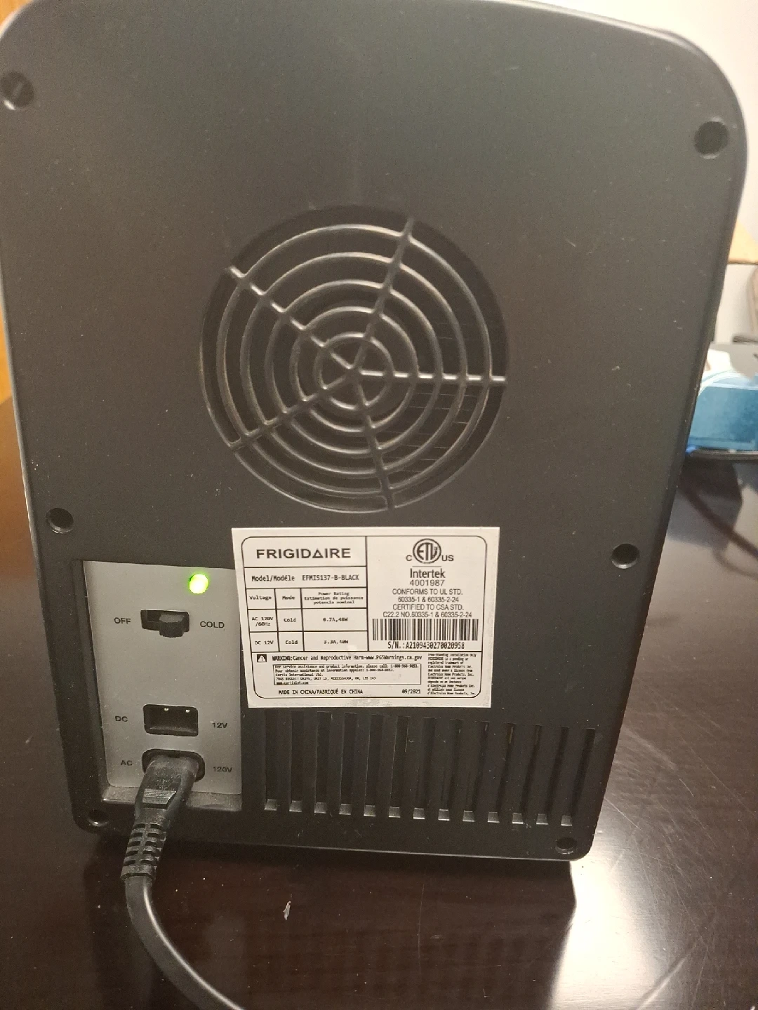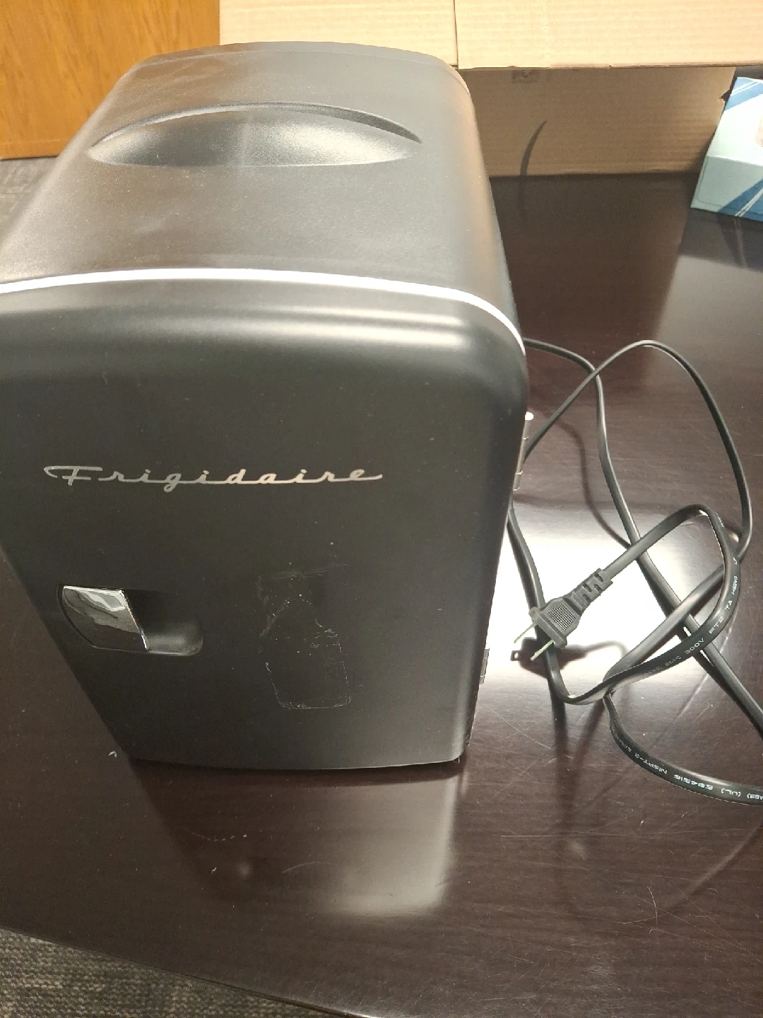 21Frigidaire Portable Retro Mini Refrigerator EFMIS129. Versatile Storage: Store snacks, beverages, and skin care products in this retro-inspired mini fridge. Compact Design: Fits easily on your desk, bookshelf, or other handy spot, making it ideal for small spaces. 6-Can Capacity: Holds up to 6 cans, providing ample space for your favorite drinks. Quiet Cooling: Dependable thermoelectric cooling system that is quiet and vibration-free. Temperature Control: Chills beverages 26-28°F below ambient temperature, with cooling extent varying based on the environment. Secure Storage: Locking latch keeps items secure, perfect for dorms, cubicles, and nurseries. Dual Power Options: Plugs into a 12V car adapter or home outlet, with both cords included for convenience. Economical Operation: Consumes much less power than a traditional refrigerator; allow 2 hours to reach optimal temperature. pen Door Width Less Than 20 in Door Style Single Door Custom Bundle No Assembled Product Dimensions (L x W x H) 11.81 x 7.08 x 10.40 Inches MPN Na, EFMIS129-RED Smart Home Compatibility na Energy Consumption per Year Less than 200 kWh Number of Shelves 1 Item Height 10" Number of Doors 1 Features Retro Style Cable Length 2 ft Finish Gloss Item Width 7" Number of Freezer Compartments 1 Ice Maker Location Above Refrigerator Installation Does not apply EC Range A+++ - G Color Black Manufacturer Part Number EFMIS129-BLACK Material Plastic California Prop 65 Warning Na Brand Frigidaire Type Portable Fridge Assembled Product Weight 3 lb Number of Drawers 1 Defrost Method Manual Defrost Model Frigidaire EFMIS129 Bottle Capacity Less Than 6 Smart Home Protocol Bluetooth Country of Origin Unknown Operating Sound Rating Less Than 25 dB Power Less than 200 W UPC Does not apply