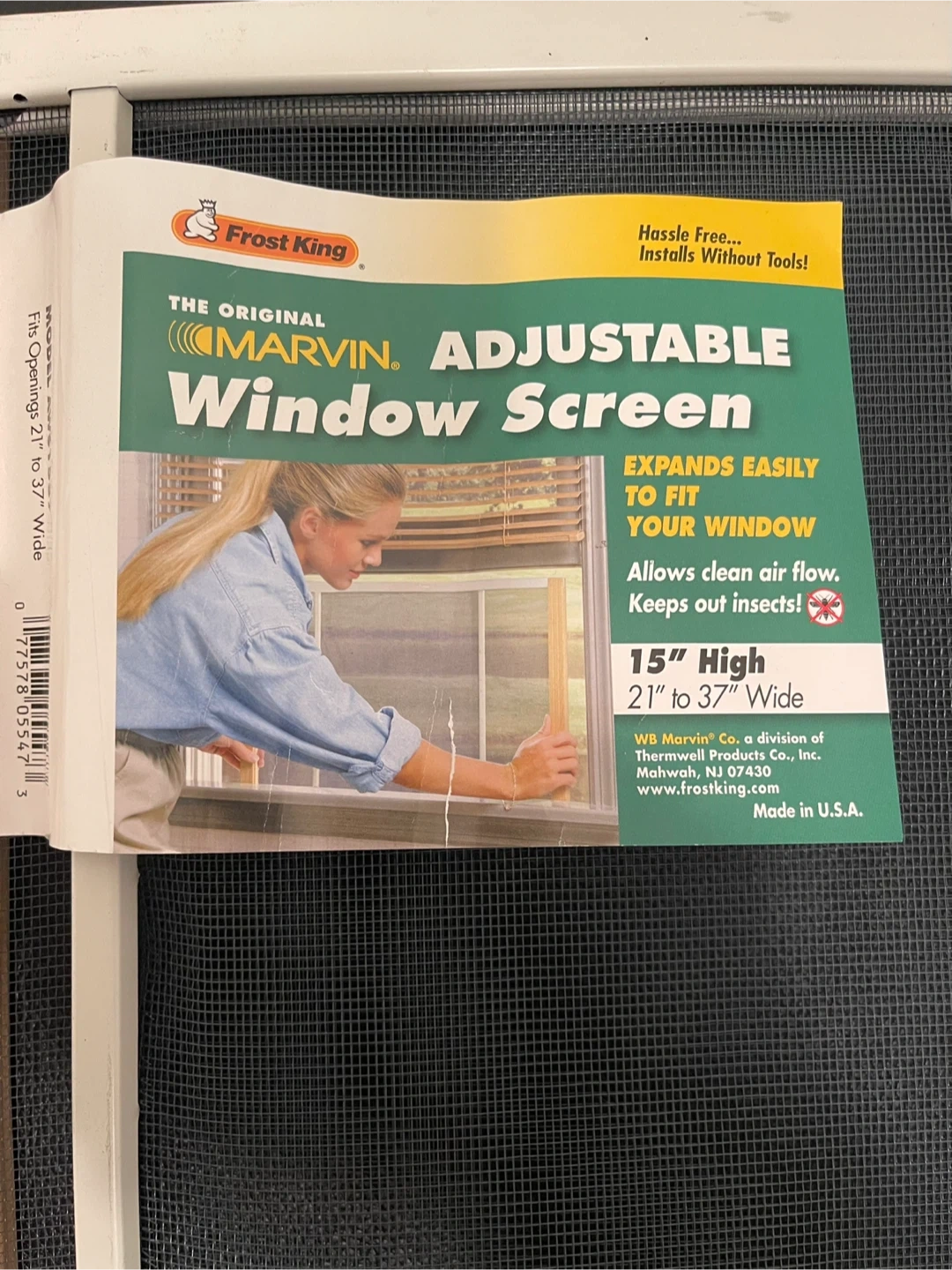 80Selling a Frost King Marvin adjustable window screen. It expands easily to fit your window and allows clean air flow while keeping insects out! The size is 15" high and adjustable from 21" to 37" wide