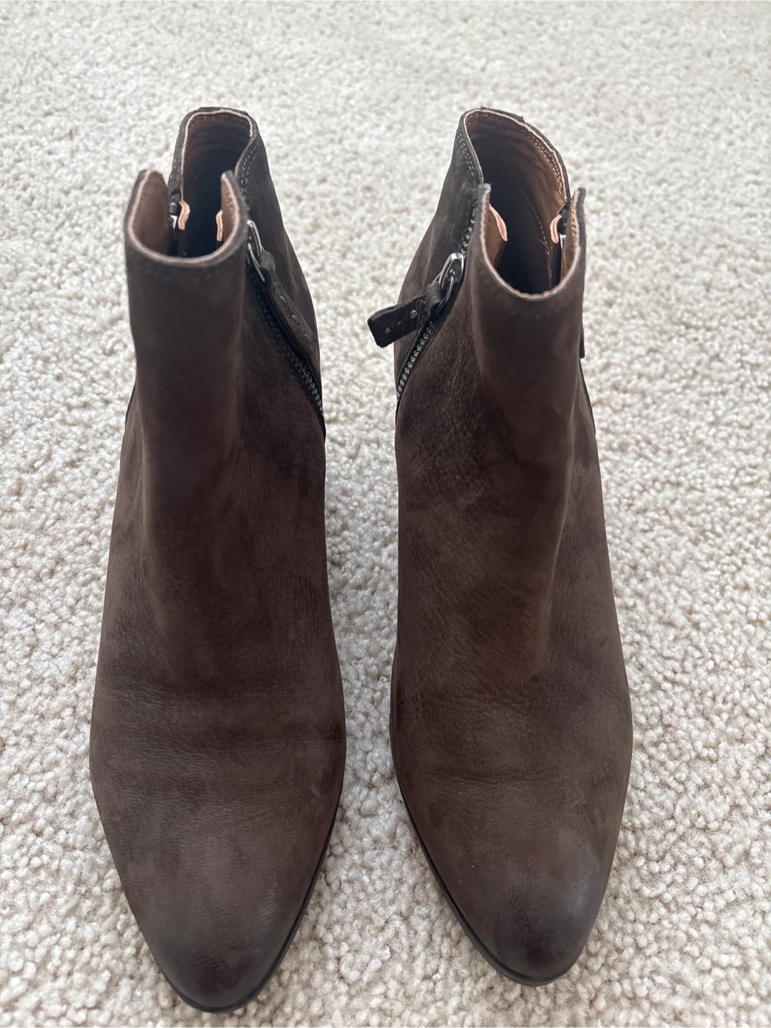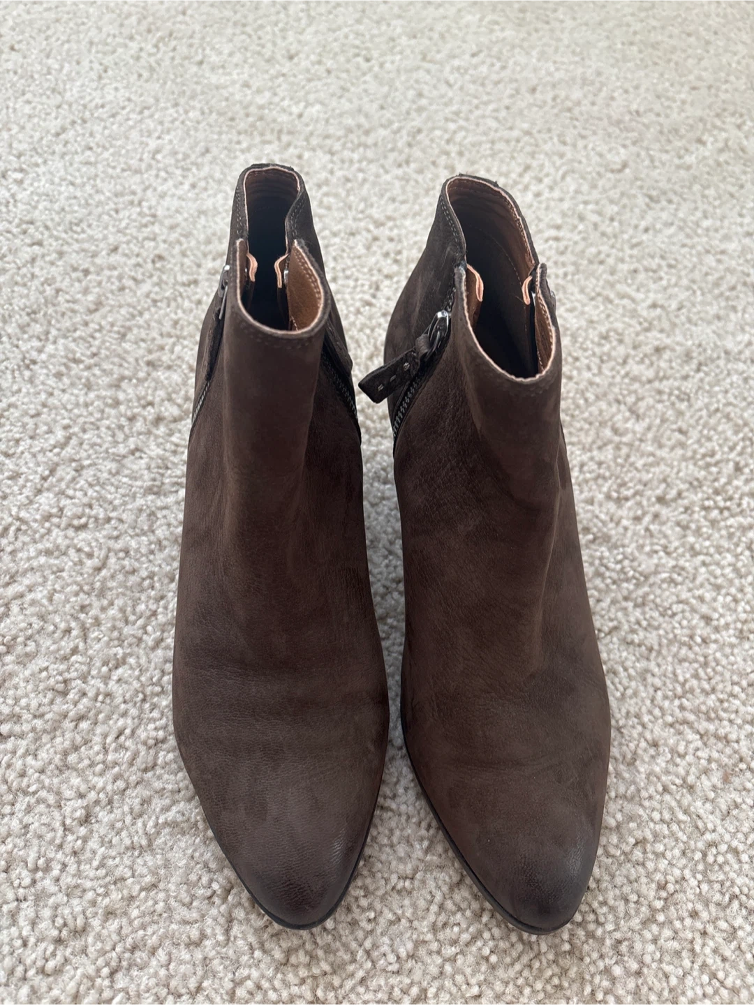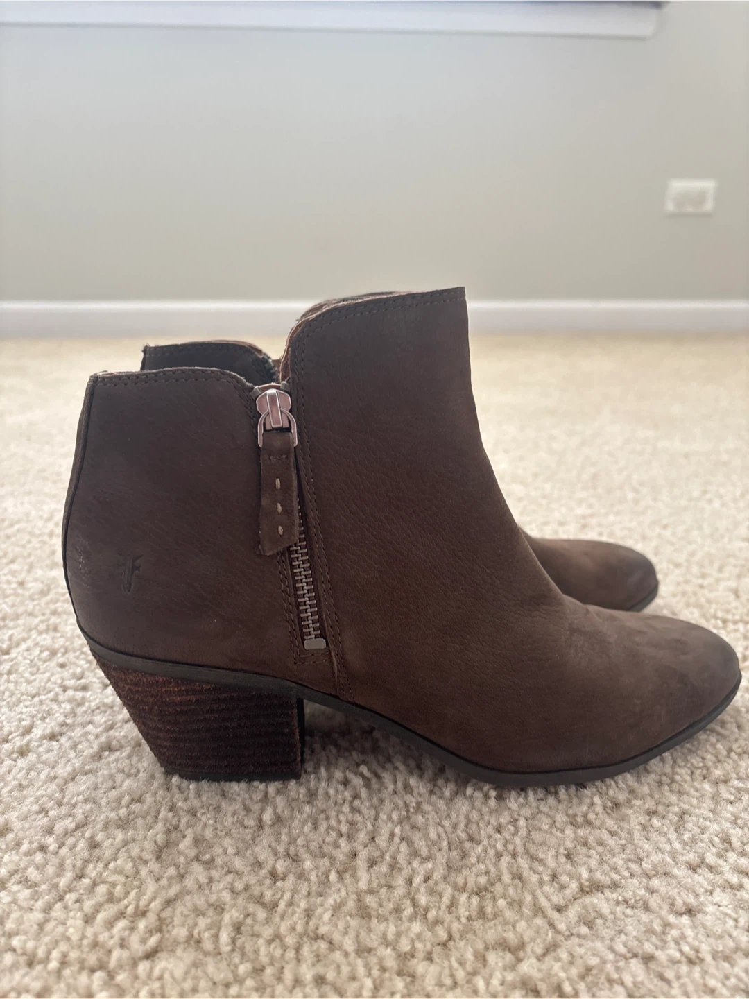 10These Frye ankle boots are a stylish addition to any wardrobe! They're a beautiful brown suede, perfect for dressing up or down. The size is 8.5.