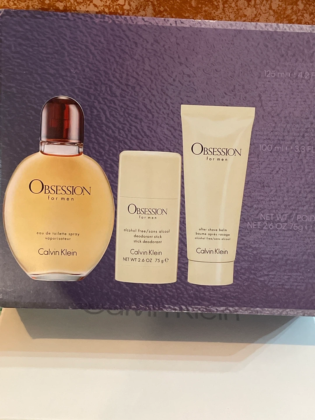 This set includes Obsession for Men Eau de Toilette spray (125ml), alcohol-free stick deodorant (75g), and after shave balm (100ml). A complete fragrance experience from Calvin Klein. Perfect for gifting!