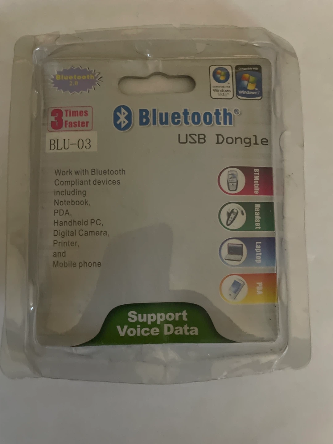 Selling a Bluetooth USB Dongle, model BLU-03! It's compatible with Windows and supports voice data. It works with Bluetooth compliant devices including Notebook, PDA, Handheld PC, Digital Camera, Printer, and Mobile phone. It has Bluetooth specification V2.0 and supports networking, dial-up, fax, and LAN access. The box is included