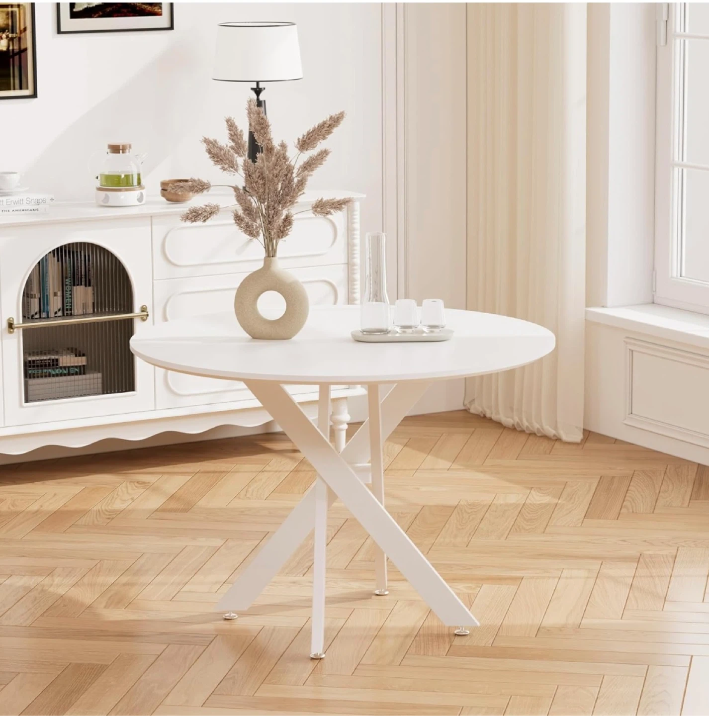 Brand new 36” round white wood table (chairs not included) still in the box so assembly required. This is listed on Amazon for $150 (without shipping) so this is a steal!