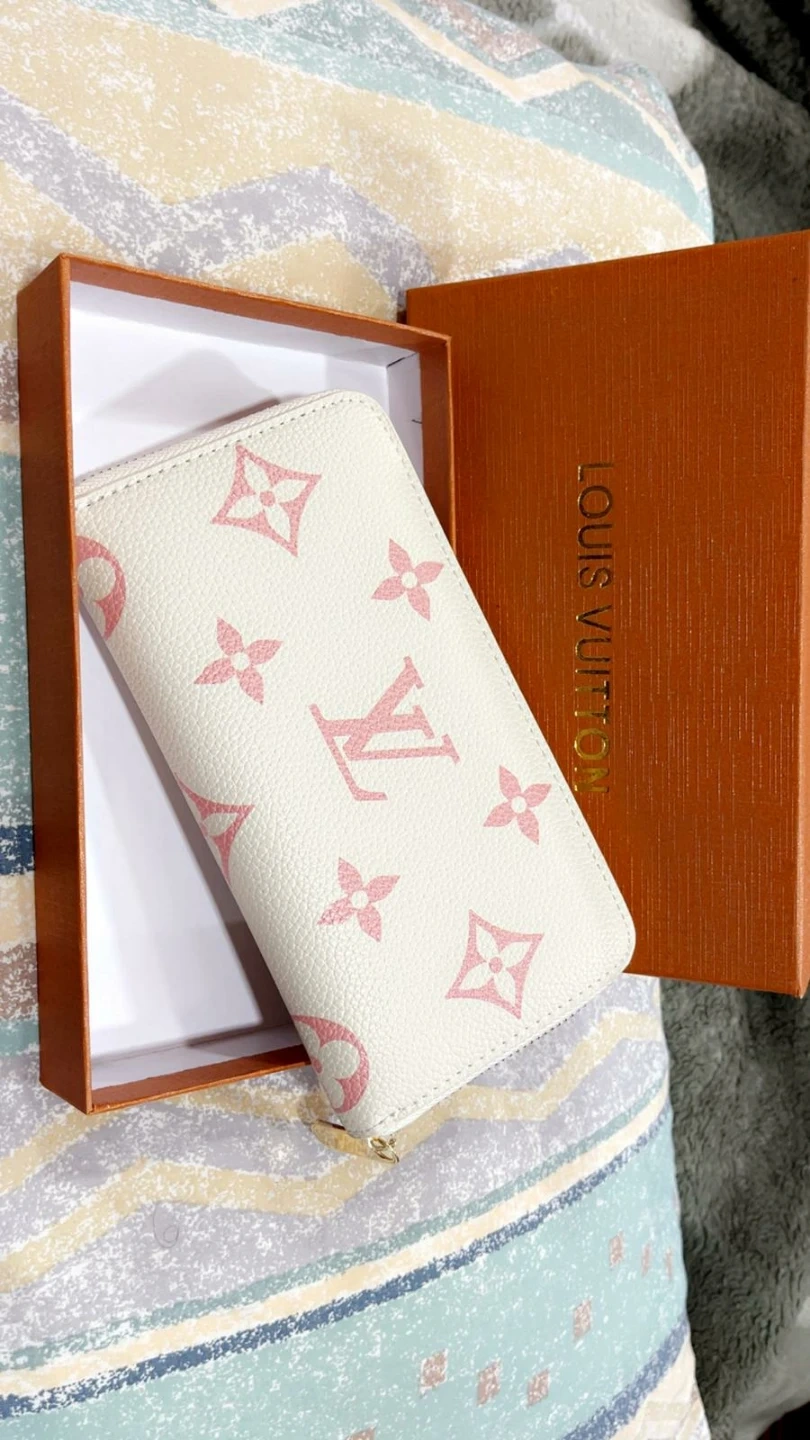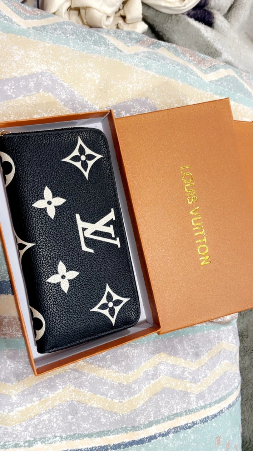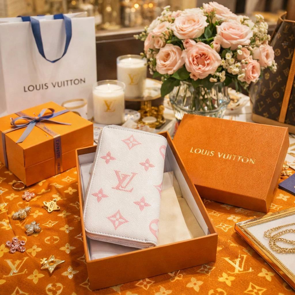 A Louis Vuitton monogram canvas zip-around wallet. This wallet features the iconic LV pattern. It comes in a classic Louis Vuitton box.