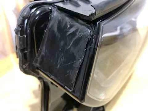 The light shows a bit of black glue on the outside, which was applied to seal a slight crack, which is why it was replaced. This does not affect its performance or front aesthetics. Once mounted in its original position, it should not have any problems.