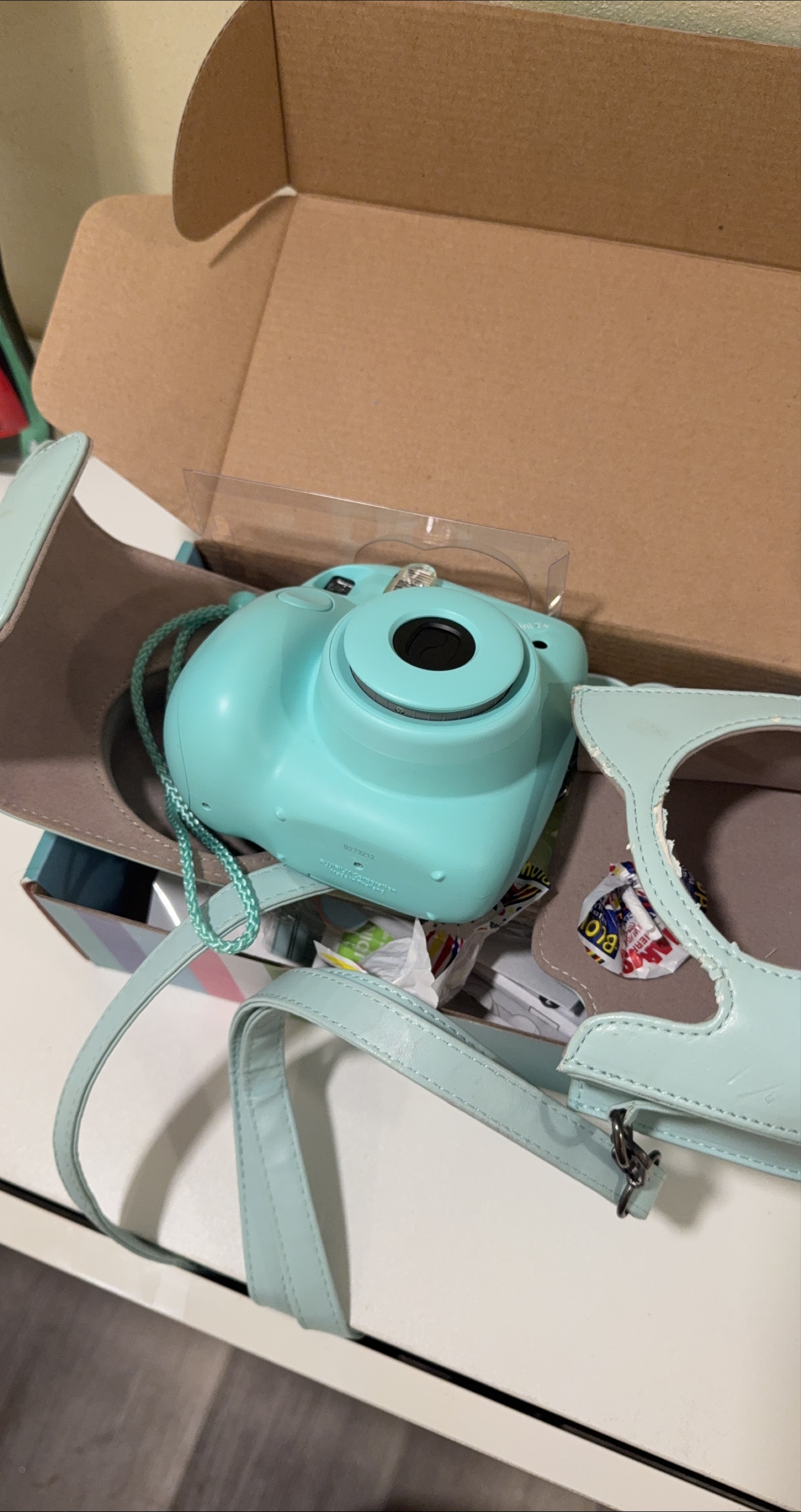 Selling a Fujifilm Instax Mini 7+ instant camera in a cute mint green color! It comes with its original box and a matching carrying case. Perfect for capturing fun memories on the go!
