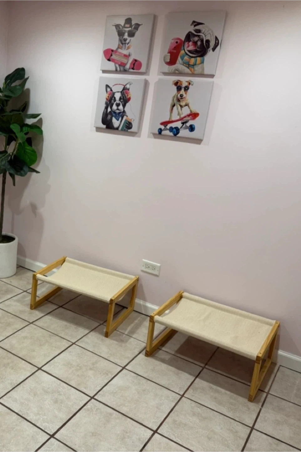 44Selling 2 FUKUMARU cat | dog beds, perfect for indoor and outdoor use. It's a wooden raised hammock, great for cats, dogs, bunnies, and other small animals. The bed is white and measures 21 x 16.5 inches. It features breathable and washable linen. Assembled but not used. Pick-up North Ave & Kostner Serious inquiries only!