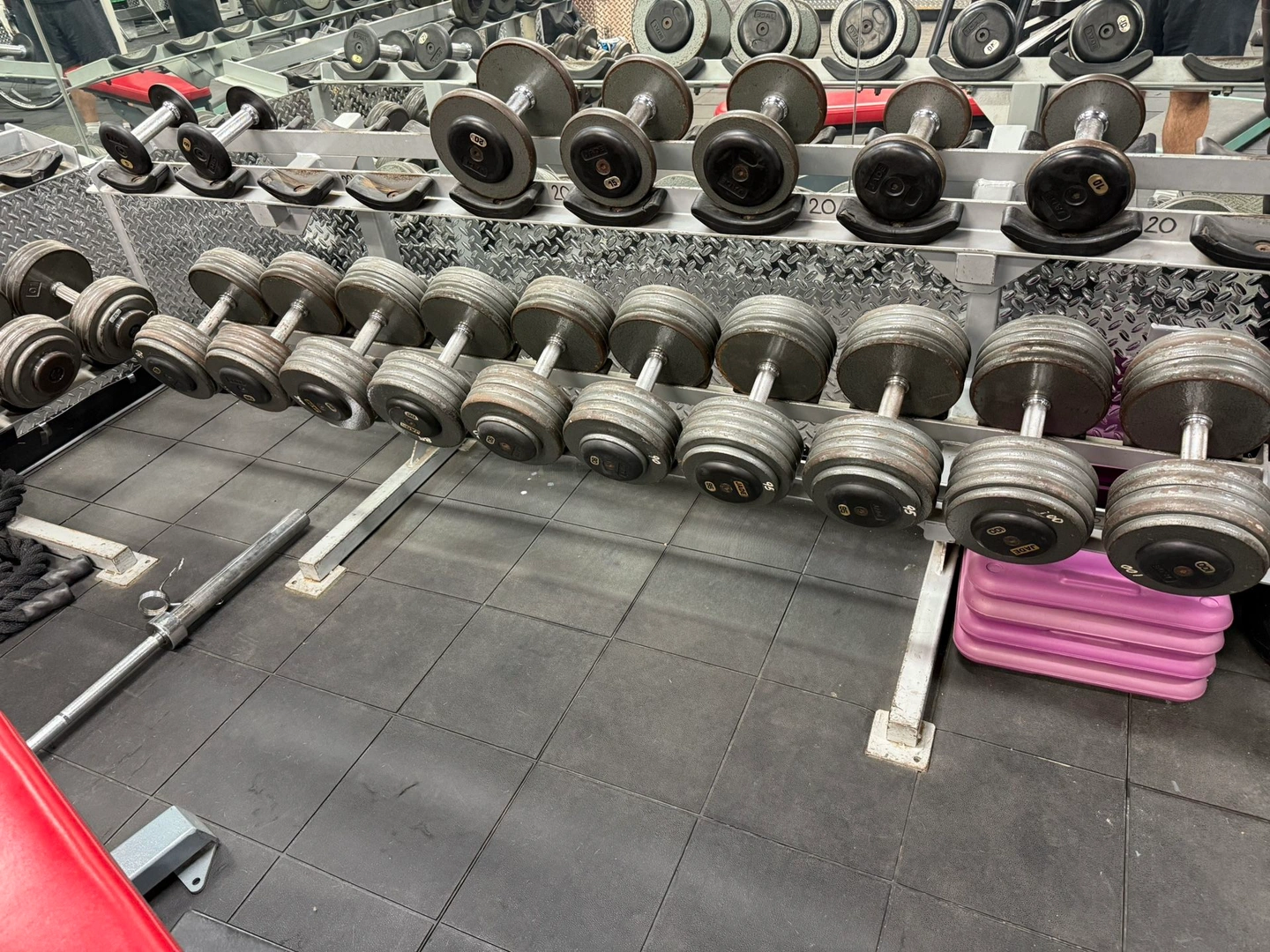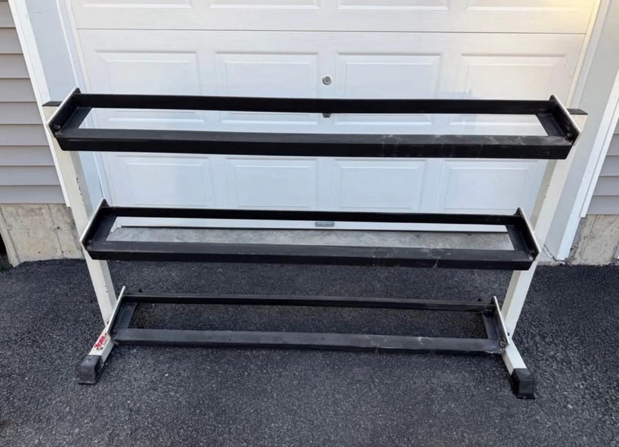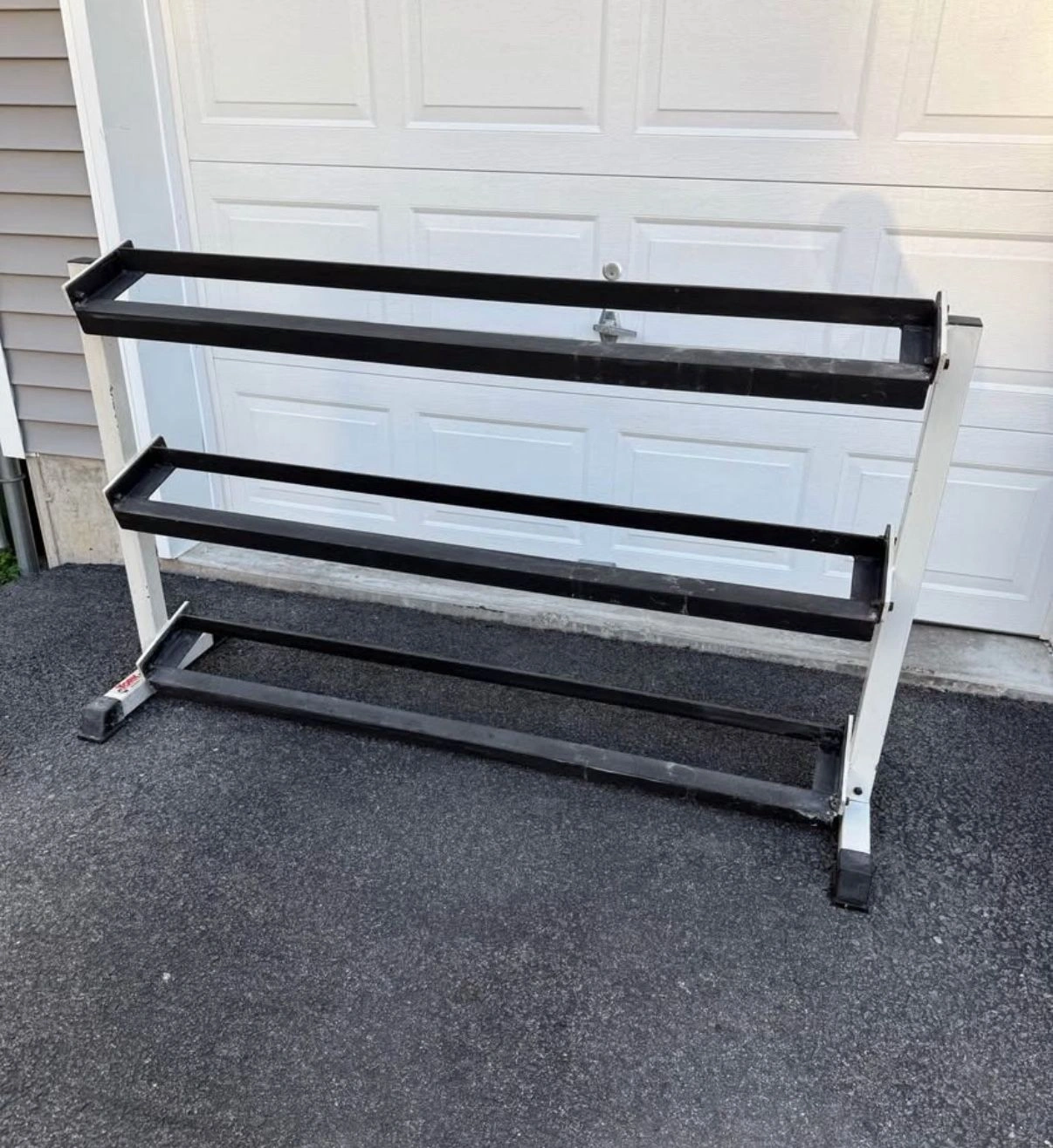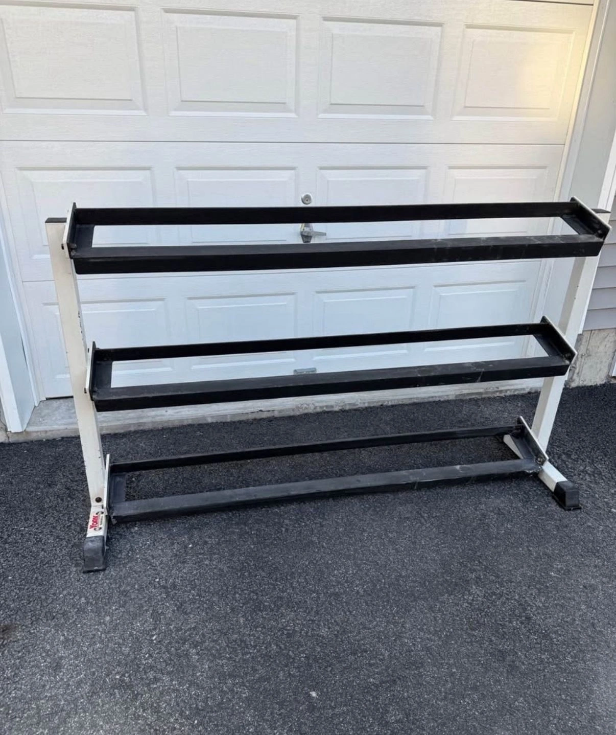 15Full Round Prostyle Dumbbell Set. Jade and Ivanko brand dumbells. 5 - 100 in 5 pound increments 5, 10, 15, 20, 25… all the way to 100 IF YOURE INTERESTED I MAY HAVE THIS RACK AVAILABLE York barbell 3 tier commercial dumbbell rack in excellent condition Very heavy duty and solid dumbbell rack. Length … 65.5” Width … 21” Height … 40”