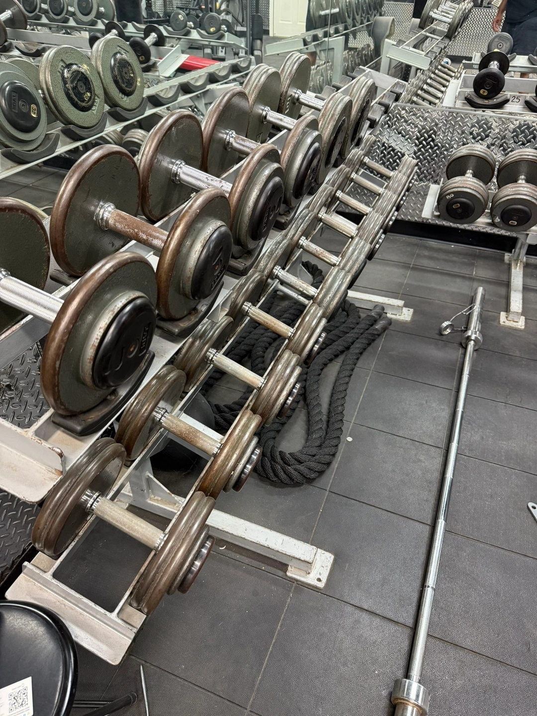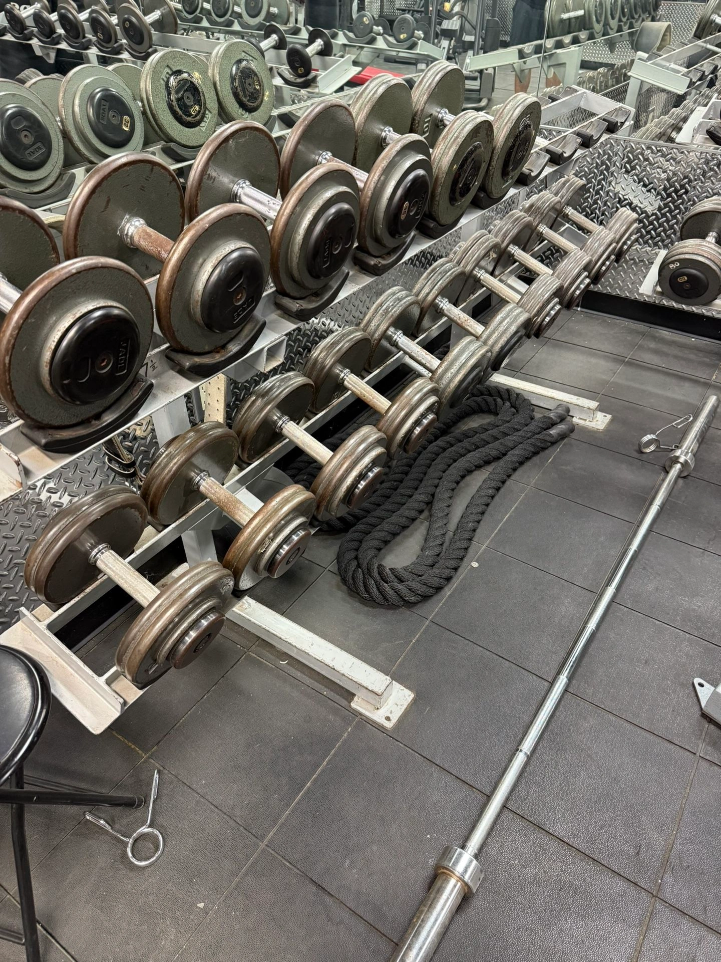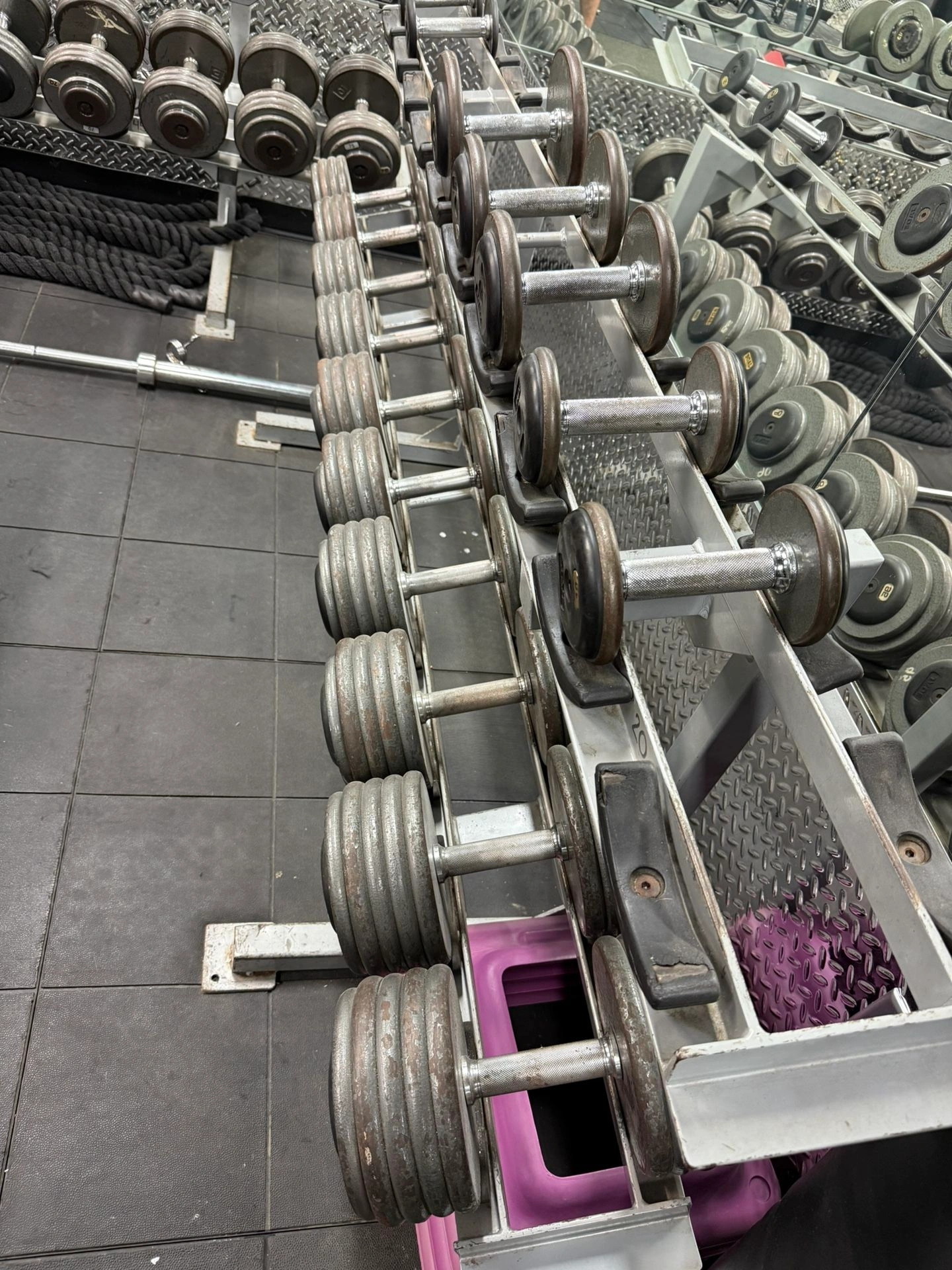 15Full Round Prostyle Dumbbell Set. Jade and Ivanko brand dumbells. 5 - 100 in 5 pound increments 5, 10, 15, 20, 25… all the way to 100 IF YOURE INTERESTED I MAY HAVE THIS RACK AVAILABLE York barbell 3 tier commercial dumbbell rack in excellent condition Very heavy duty and solid dumbbell rack. Length … 65.5” Width … 21” Height … 40”