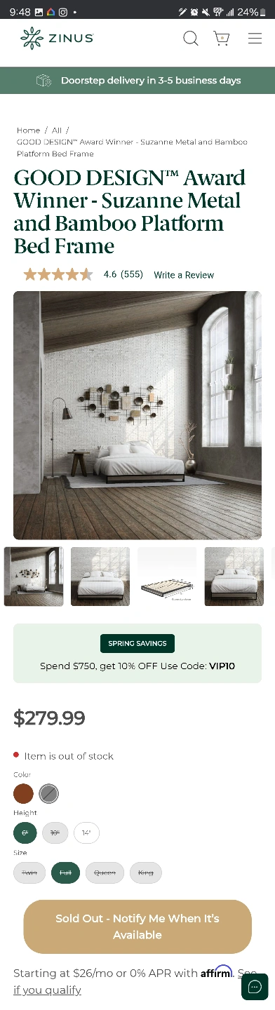297‼️FULL SIZE‼️ Bed Frame is ‼️FULL SIZE‼️ Brand new in box, Zinus Suzanne platform bed frame. ‼️Full size‼️. Metal and bamboo construction. Easy assembly.