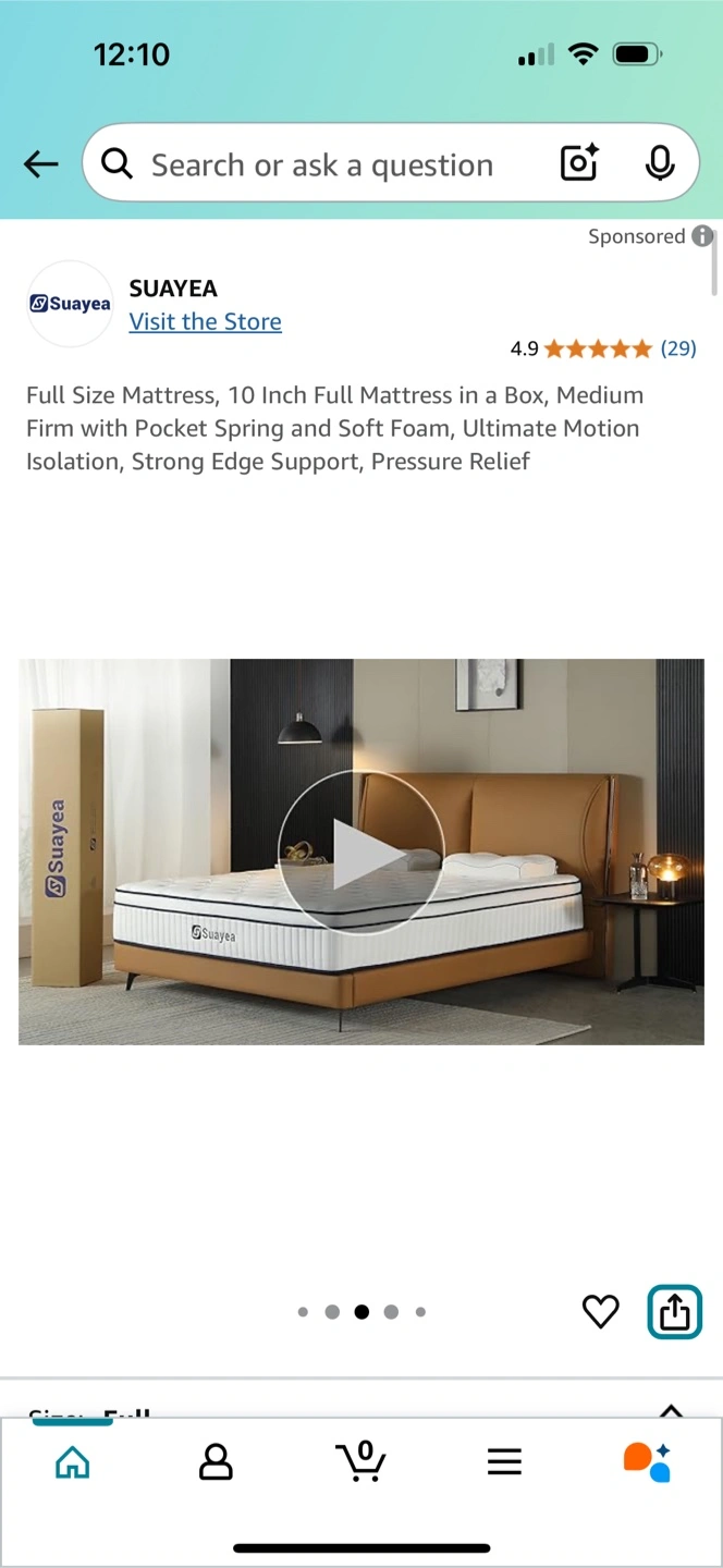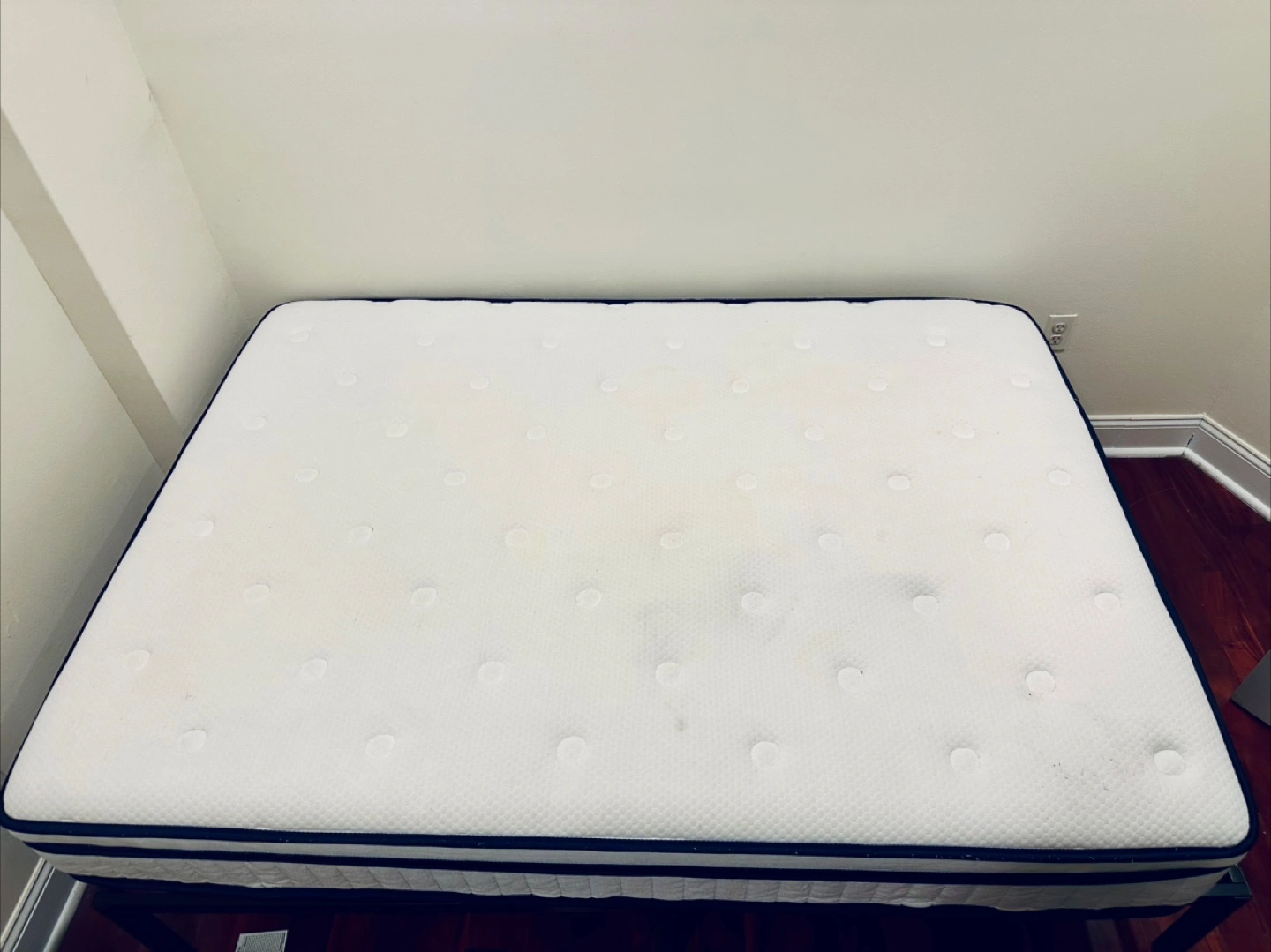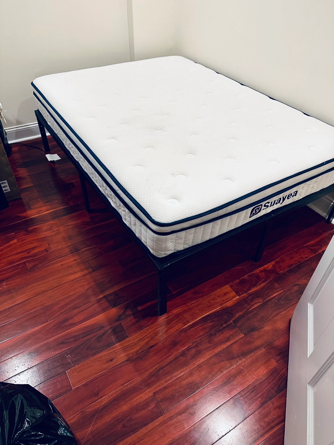 Selling a Suayea 10 inch full size mattress and bed frame! It's a medium firm mattress with pocket spring with a pillow top. It's in great condition and ready for a new home. Only 1 year old, we are converting the second bedroom into an office so its gotta go!