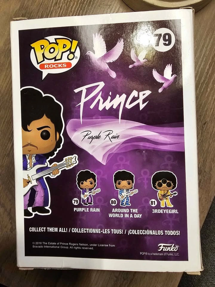 81Selling a Funko Pop! Rocks figure Prince number 79. It comes in its original box with a slight bend in side upper corner. Please see photos.