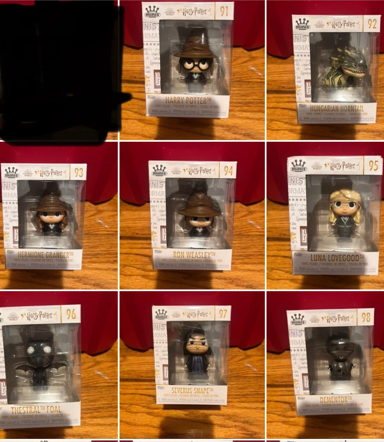 I have a set of Funko Minis from the Harry Potter collection. They are all in great condition and come in their original boxes. Each box features a different character. These are vinyl figures.