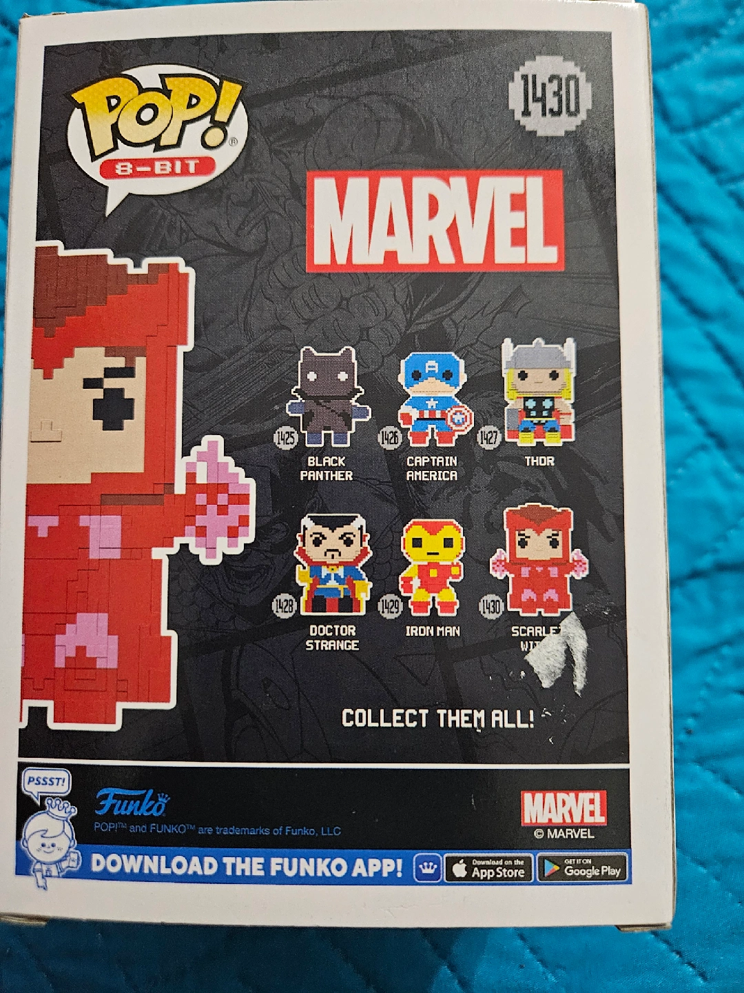 Selling a Funko Pop! 8-Bit Scarlet Witch, figure #1430. It's a bobblehead figure. Or willing to trade for other POPs. PICK UP ONLY