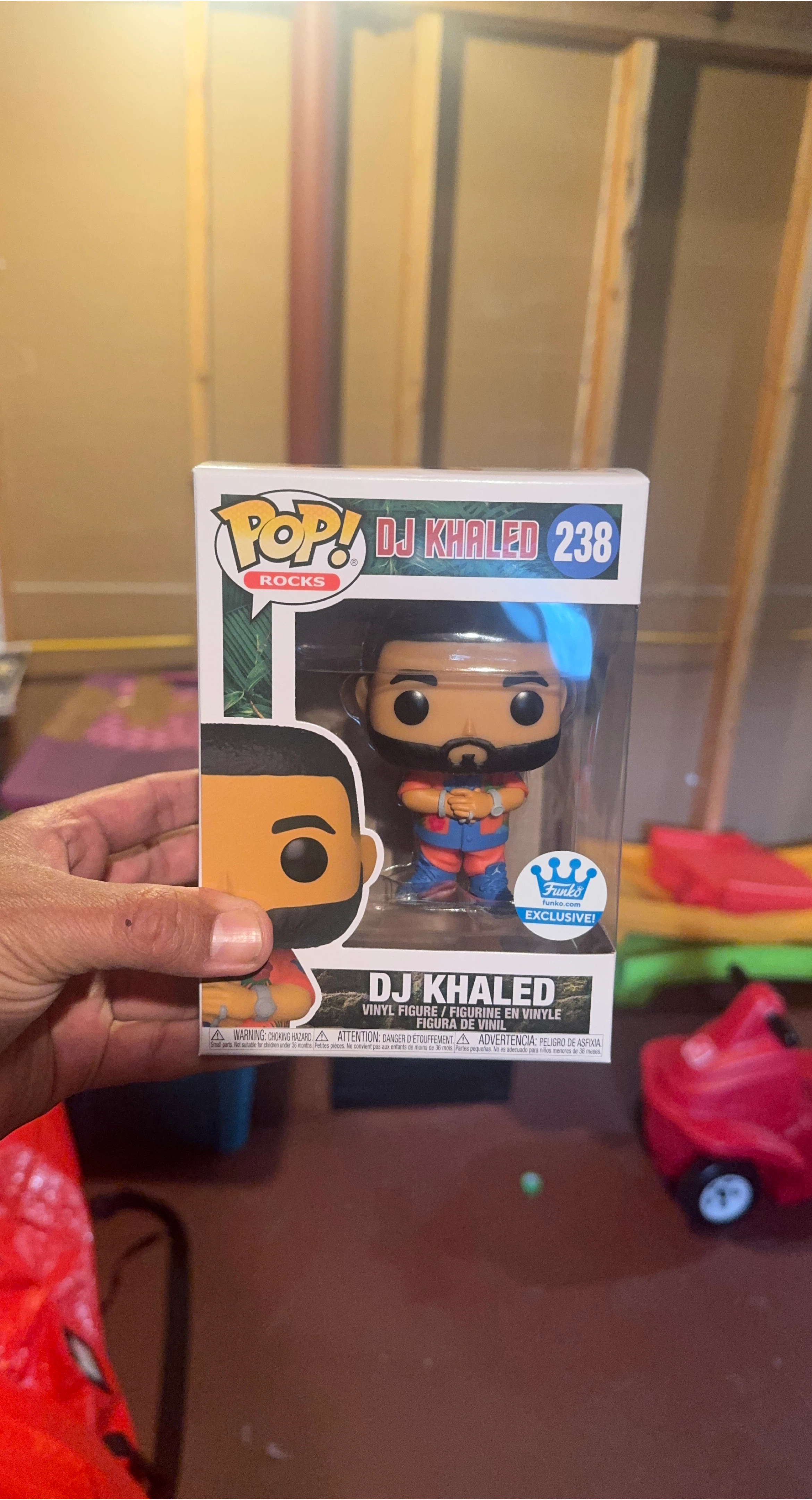 Selling a Funko Pop! Rocks figure of DJ Khaled, numbered 238. This is a Funko Exclusive item. The vinyl figure is still in its box!