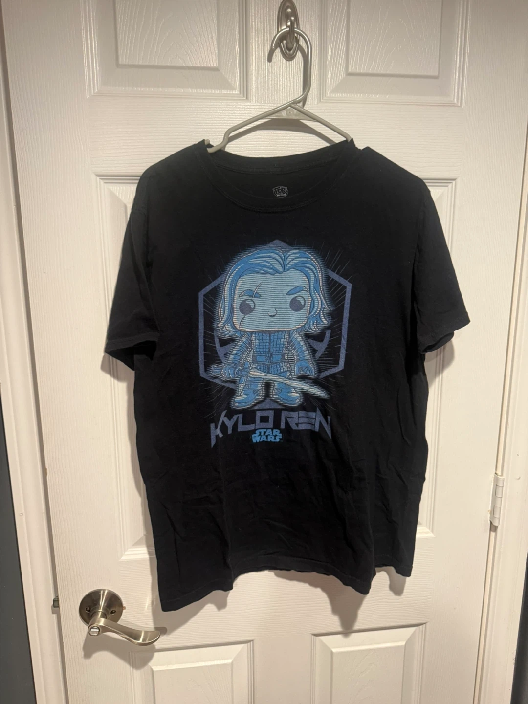 Selling a Funko Pop! Star Wars t-shirt featuring Kylo Ren. The shirt is a size large and made of 100% cotton. It's in great condition and ready for a new home!