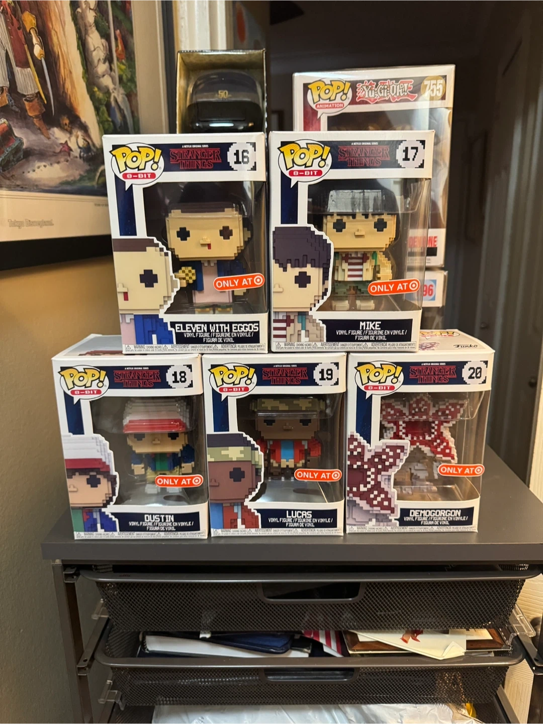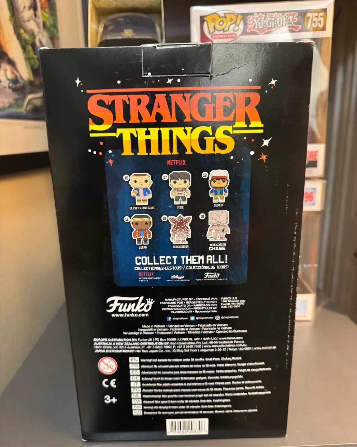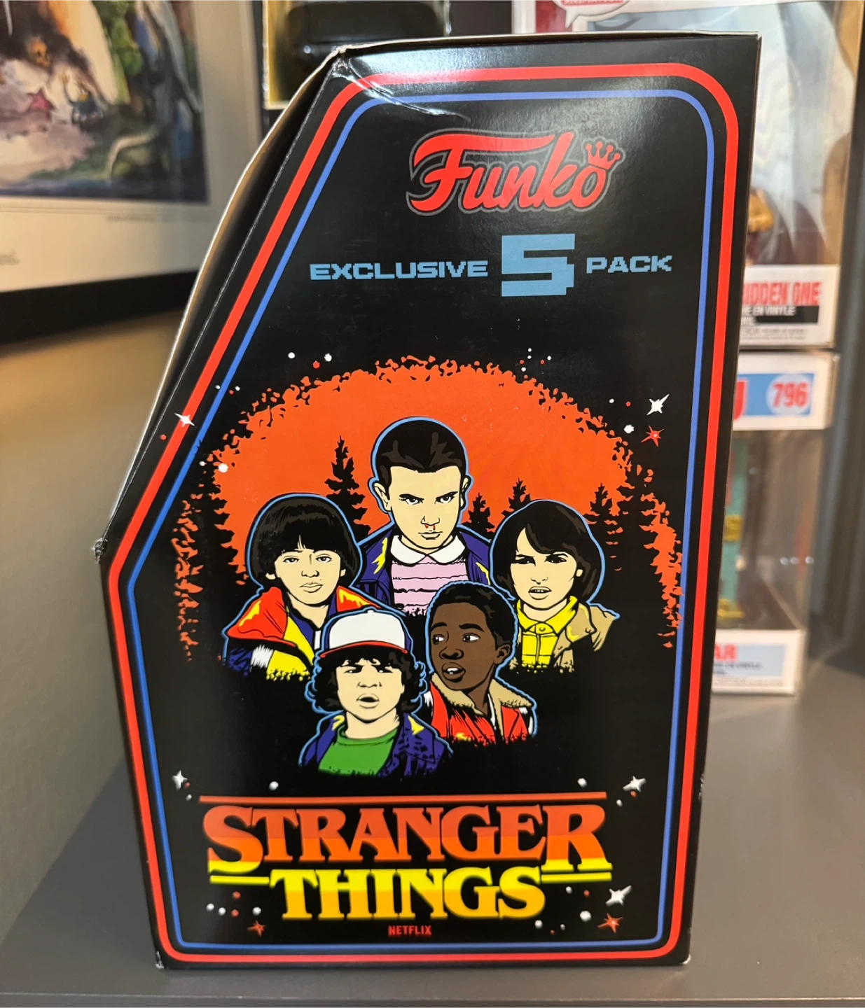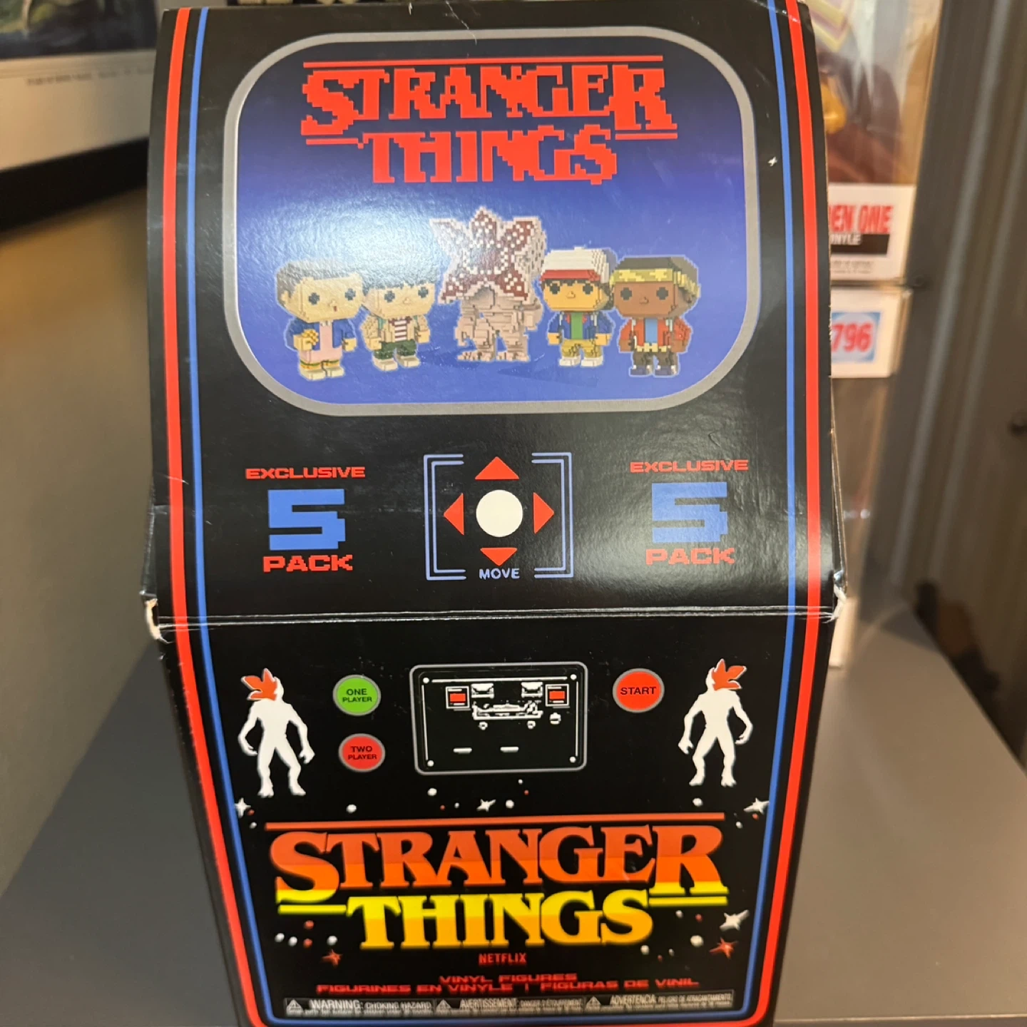 10Selling a Funko Pop! Stranger Things 8-Bit Exclusive 5-Pack. It includes Eleven with Eggos, Mike, Dustin, Lucas, and Demogorgon. The figures are vinyl.