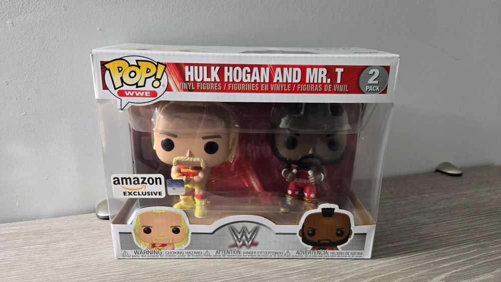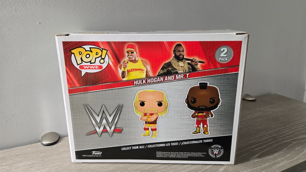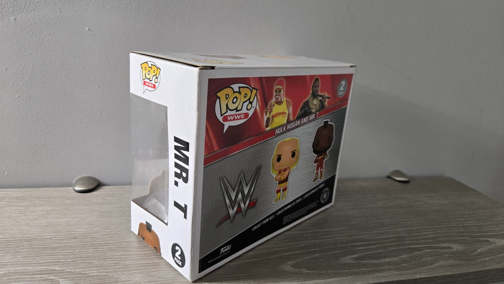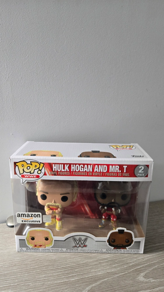 Selling a Funko Pop! WWE 2-Pack featuring Hulk Hogan and Mr. T. The box has some wear and tear, but the figures inside are in great condition!