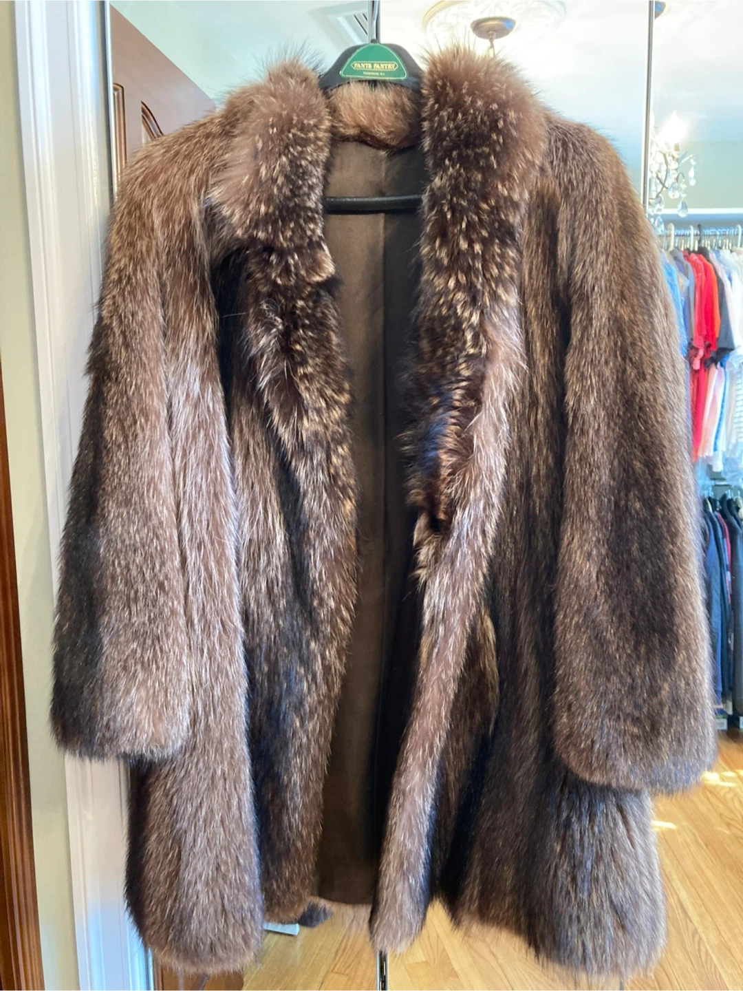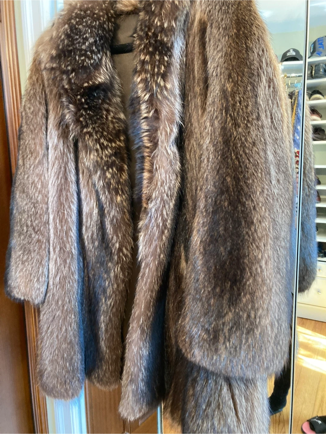 Selling a fur coat. It is brown and appears to be in good condition. It would be a great addition to your wardrobe