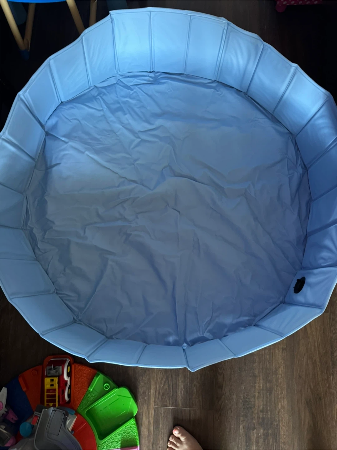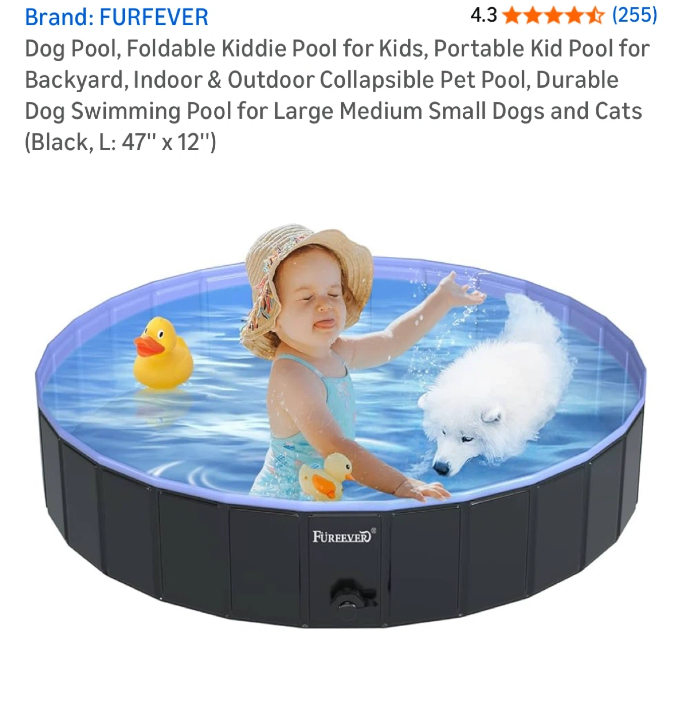 Used once for my daughter not pet. I'm selling a foldable kiddie pool by FURFEVER! It's great for kids or even pets. It's blue and measures 47" x 12". It's perfect for backyard, indoor, or outdoor use. It is durable and collapsible for easy storage