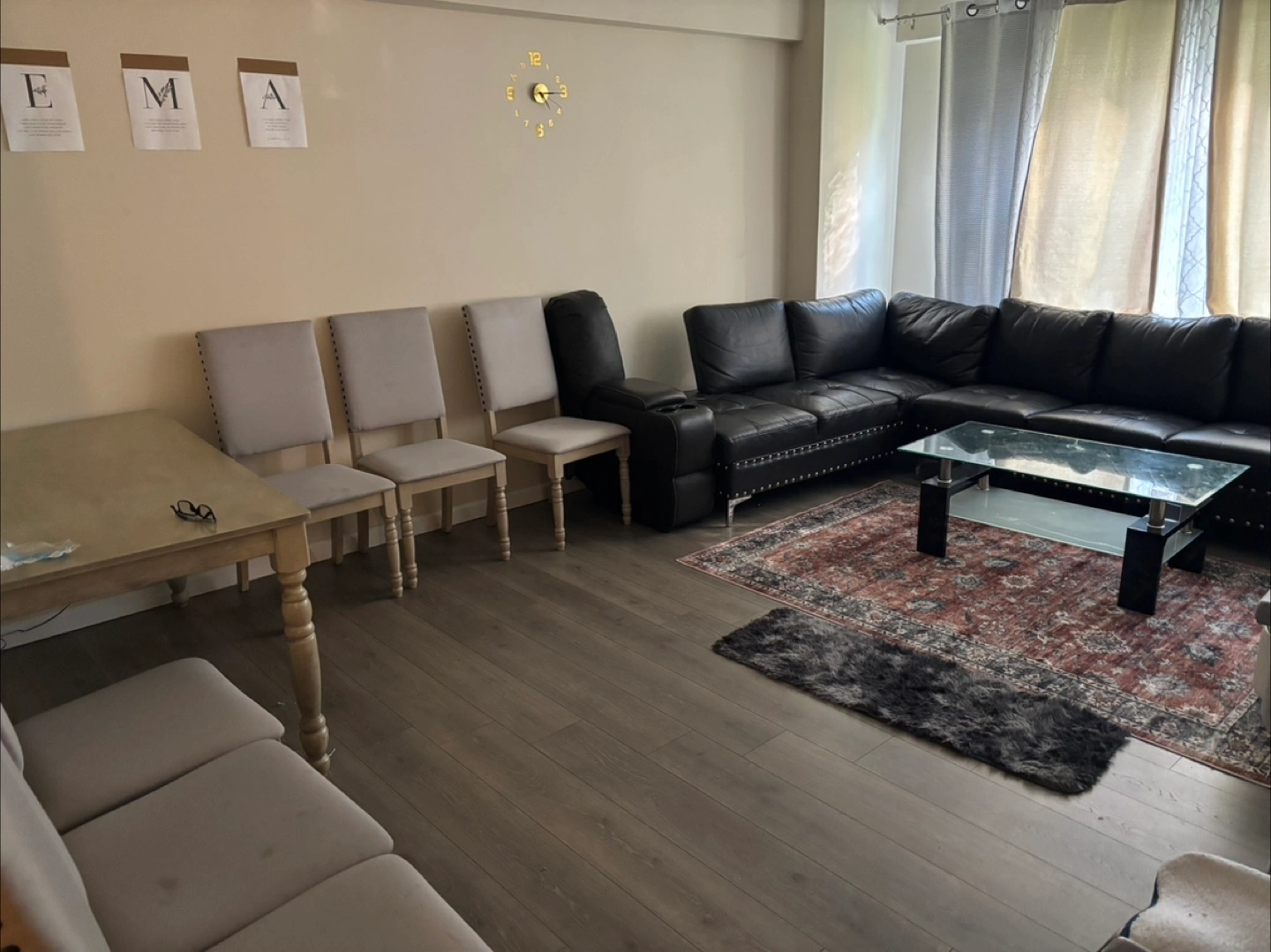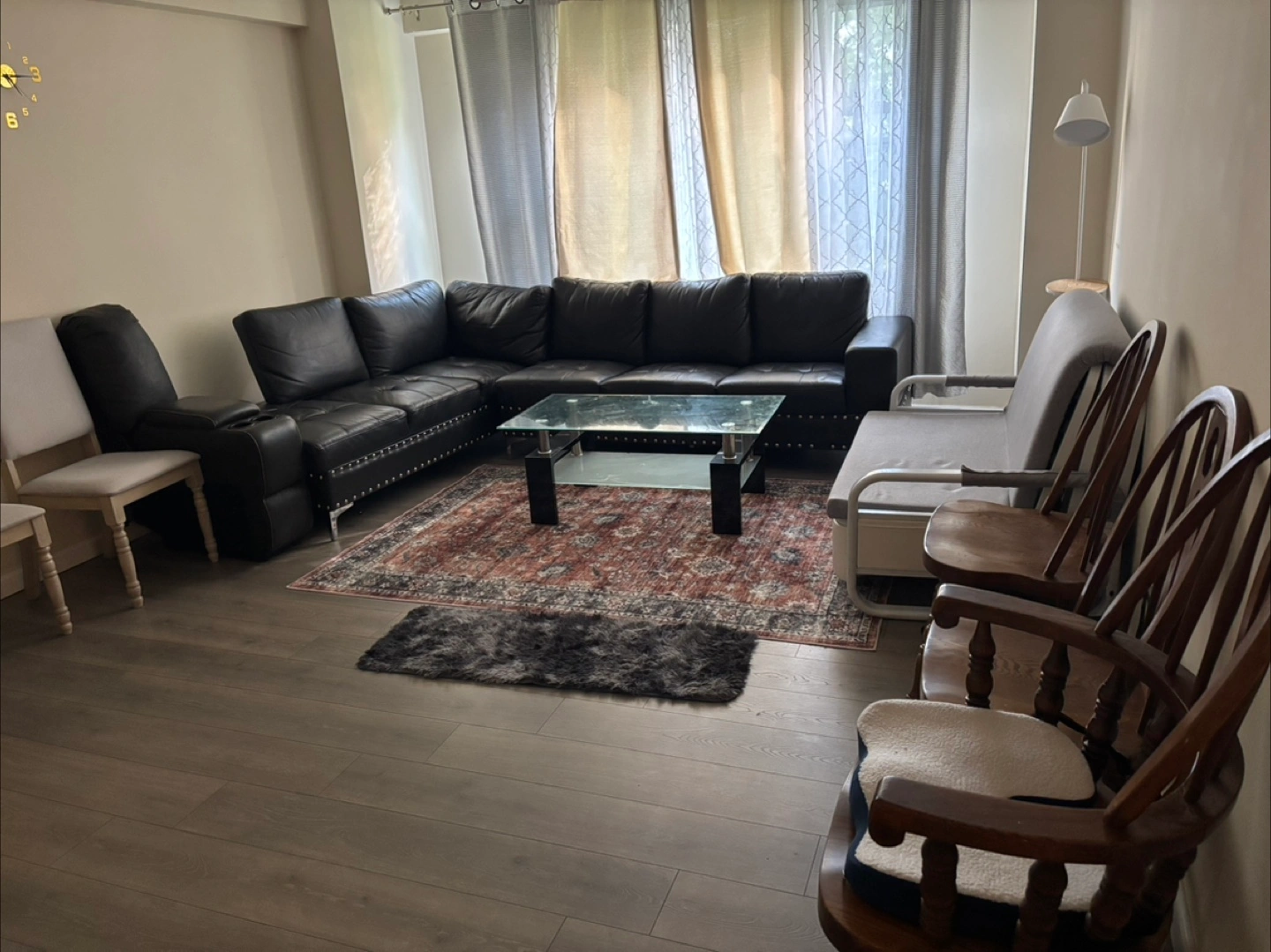 A variety of furniture pieces, perfect for furnishing a new home. Included are multiple seating options, a dining set, and a bed set. One could arrange this furniture to create a warm and welcoming space.