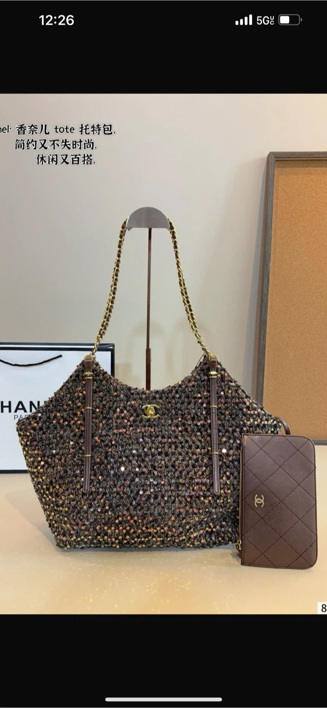 This is a stylish Chanel tote bag. It's a simple yet fashionable design, perfect for casual wear and easy to match with any outfit.