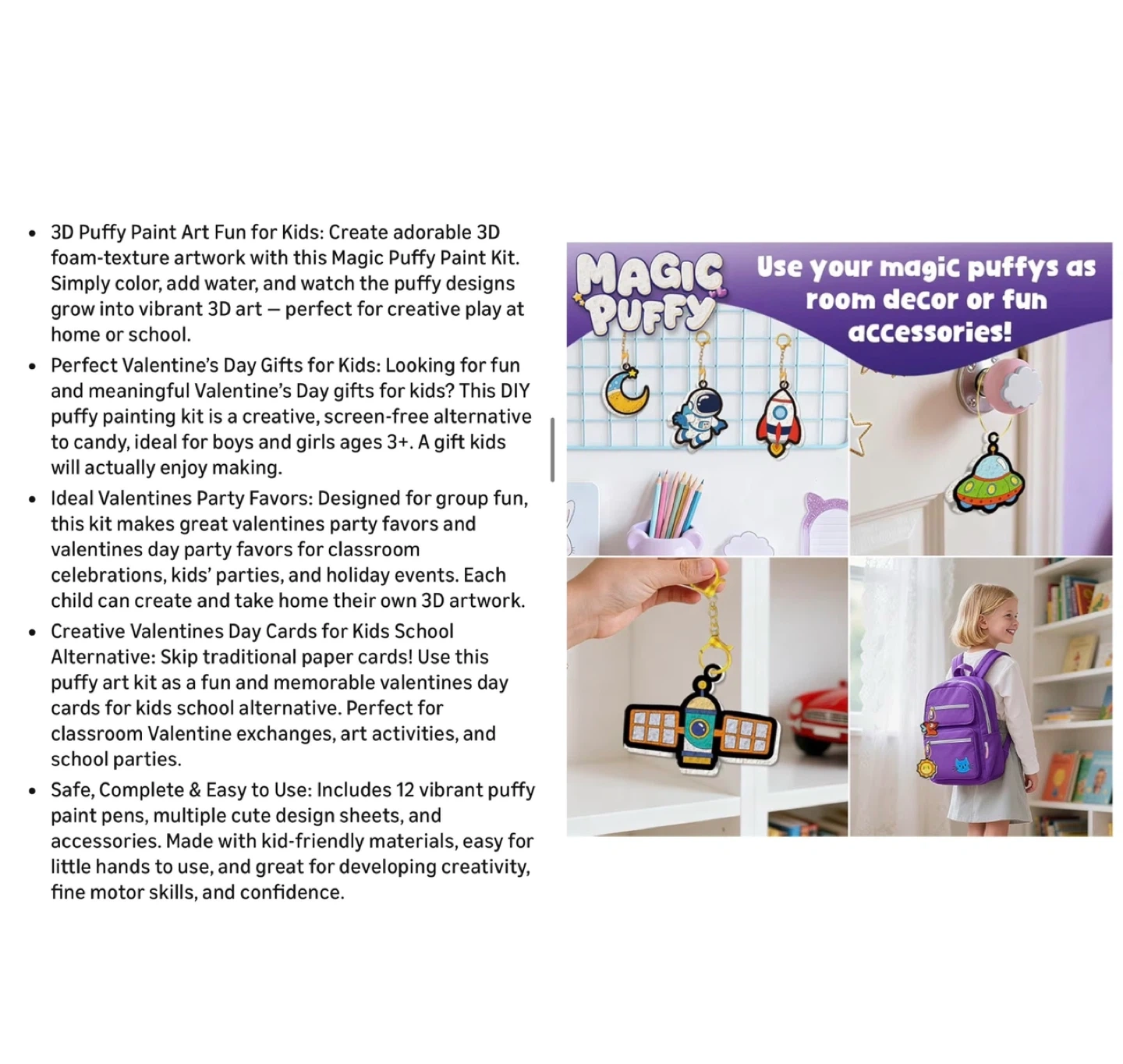 Brand new Magic Puffy Paint Kit for Kids Foam Texture Painting Set with 12 Colors Pens, Upgradde DIY Puffs to 3D Artcraft Valentine’s Day Exchange Gifts for Kids & Party Favors