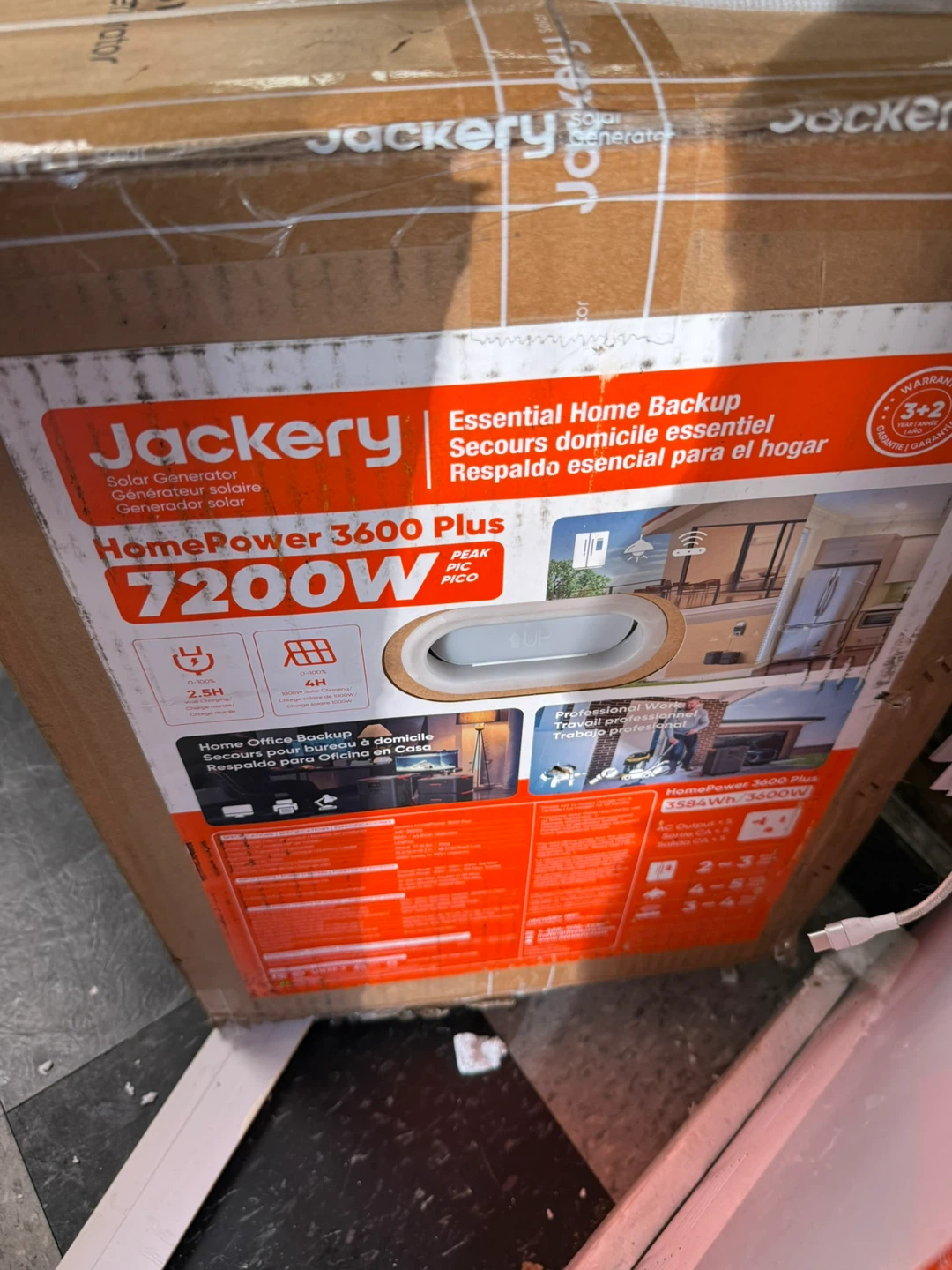 Selling a Jackery HomePower 3600 Plus Solar Generator! It's an essential home backup and a solar generator. The box says it has 7200W power. It can be used for home office backup as well. The original price was $2,799.00!
