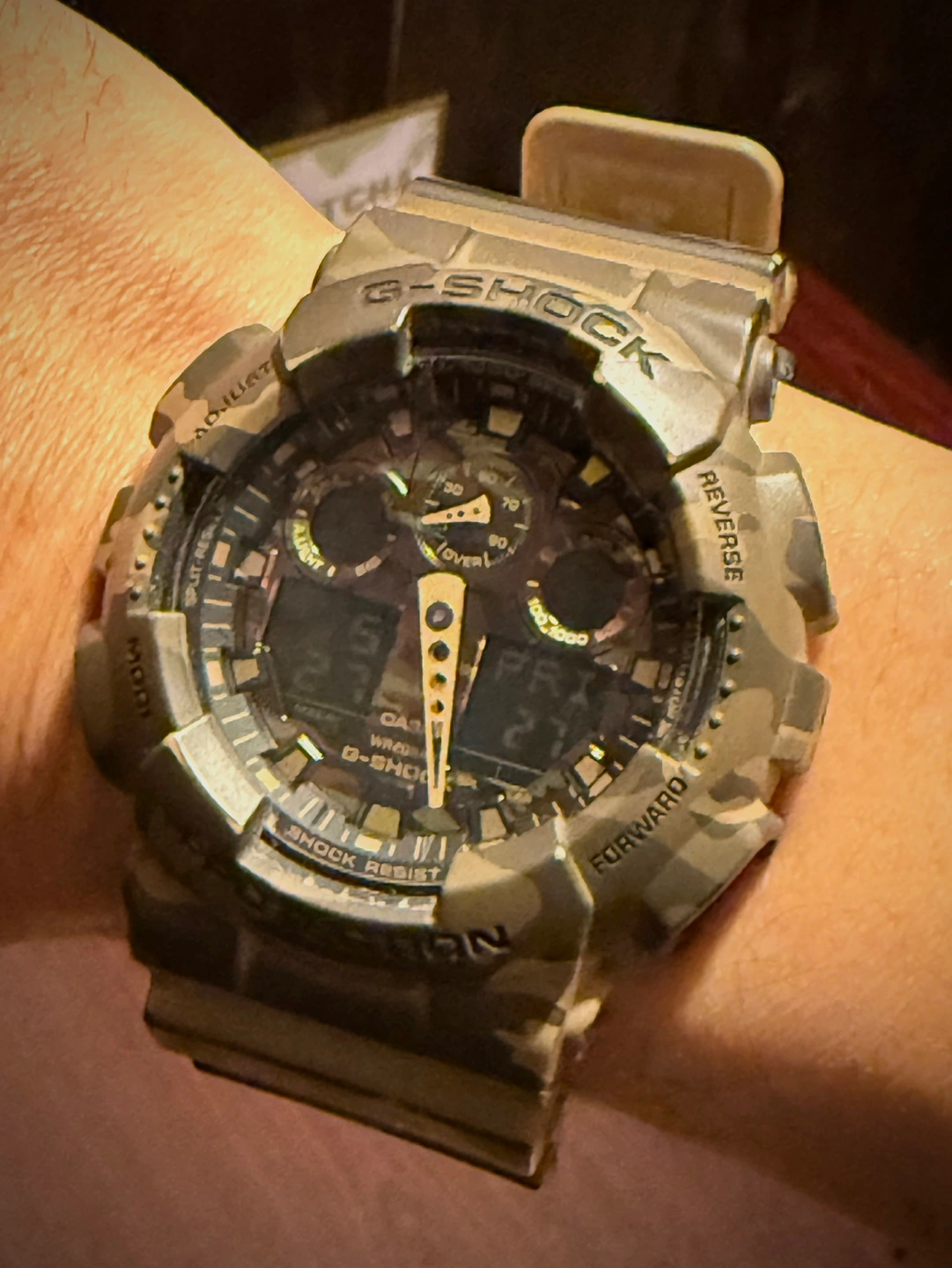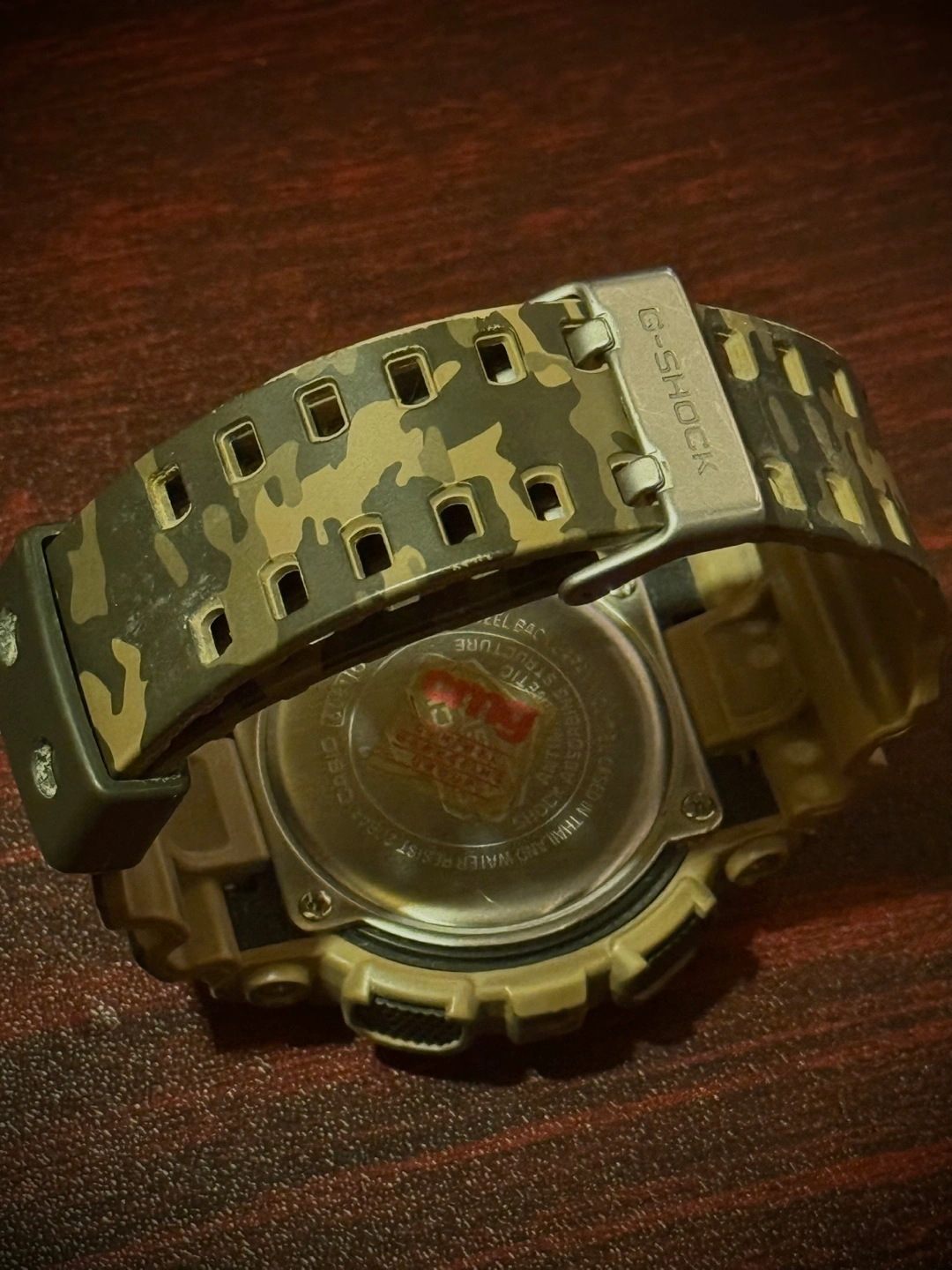 10Men's wristwatch. Camouflage band. Analog-digital display. Shock resistant. Water resistant. Stainless steel back. Pre-owned.