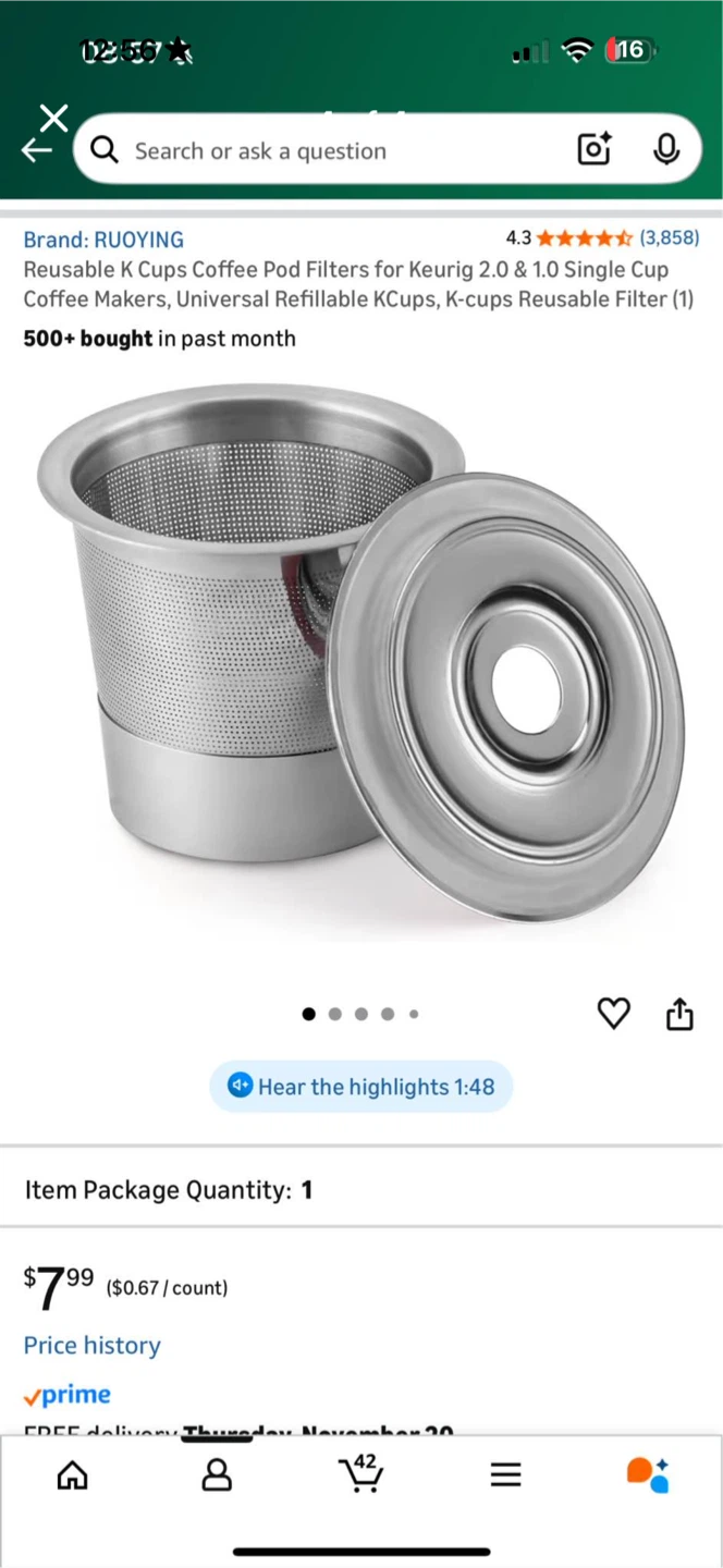 COMES WITH STAINLESS STEEL REUSABLE FILTER.