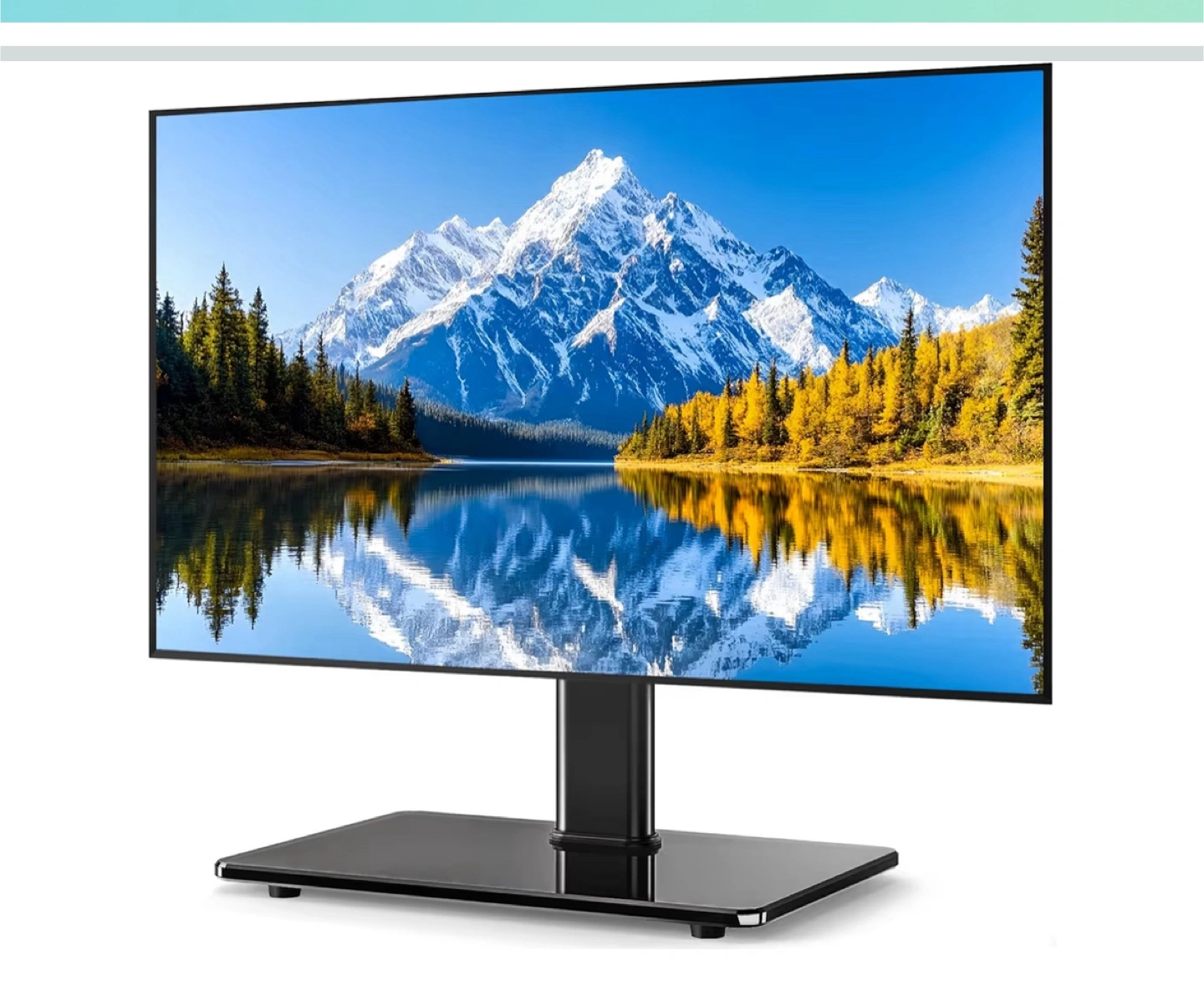 A TV stand with a large, tempered glass base. The TV mount features a swivel function, with adjustable height. Watching TV should always be a relaxing experience.