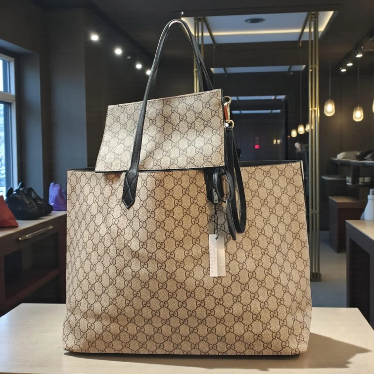 Selling a stylish Gucci tote bag that comes with a matching pouch. The bag features the classic Gucci pattern and is perfect for everyday use. It’s in great condition and ready for a new owner!