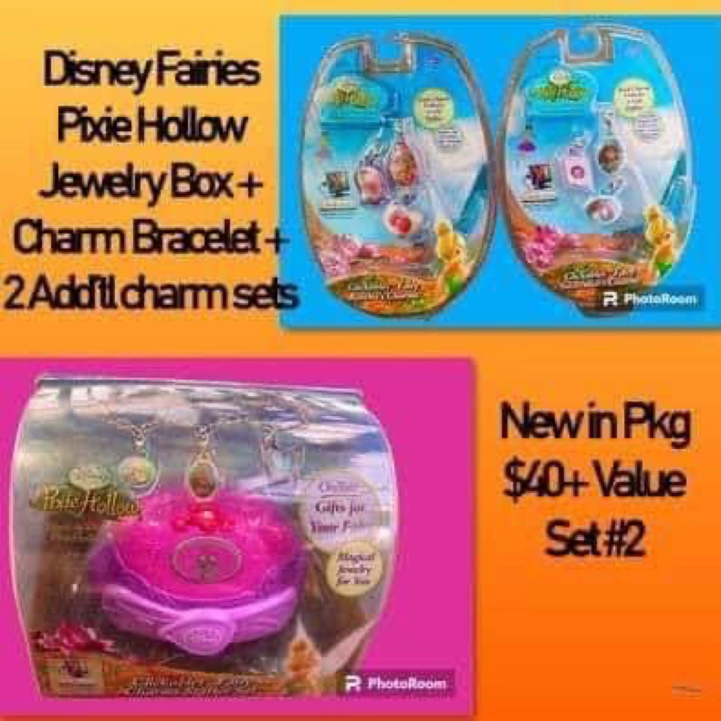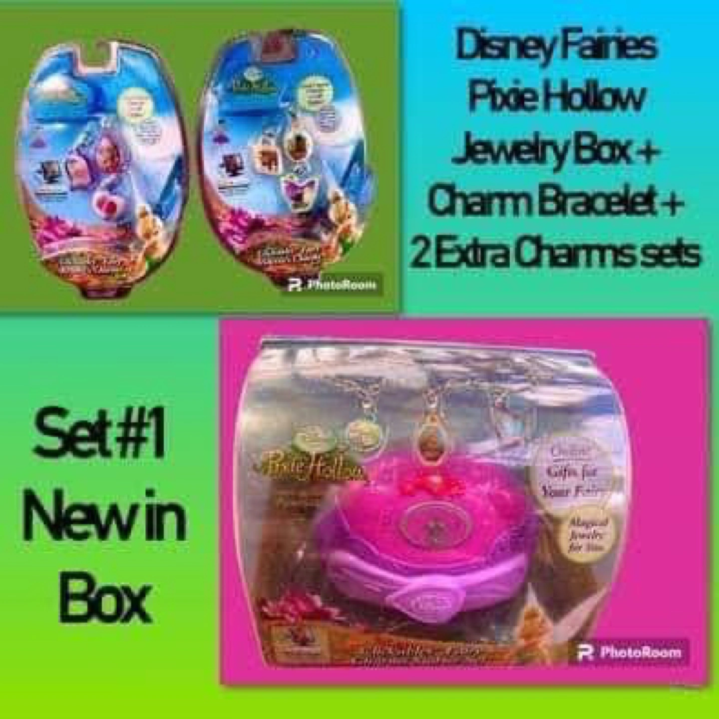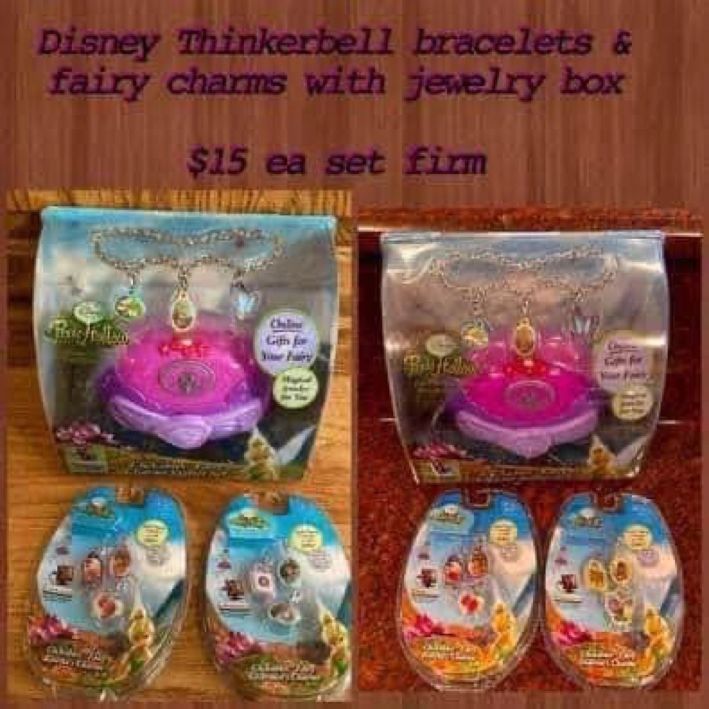 NEW Disney pixie hollow fairies jewelry box +bracelet + charms