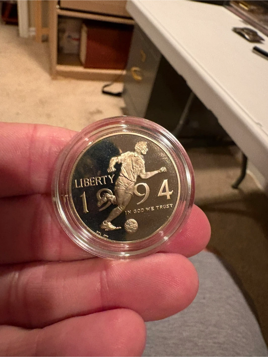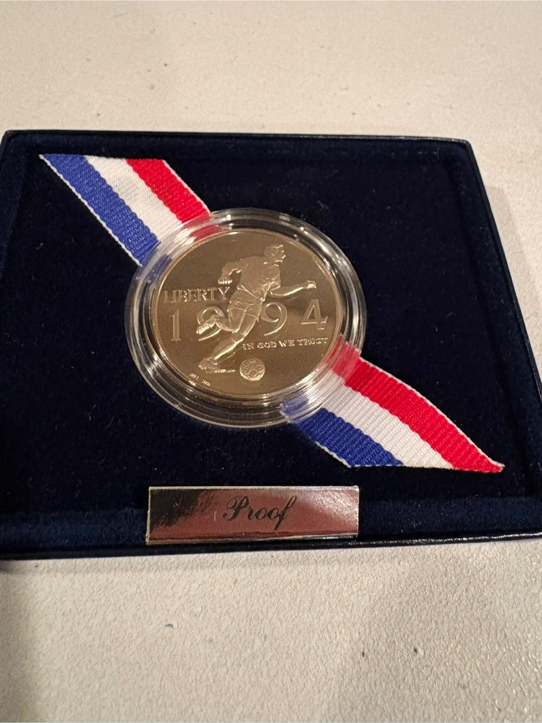 This is a United States World Cup USA 1994 commemorative coin. It's a proof clad half dollar. Includes certificate of authenticity and display case in excellent condition. Great gift for a soccer fan especially since The World Cup is coming to our are soon!