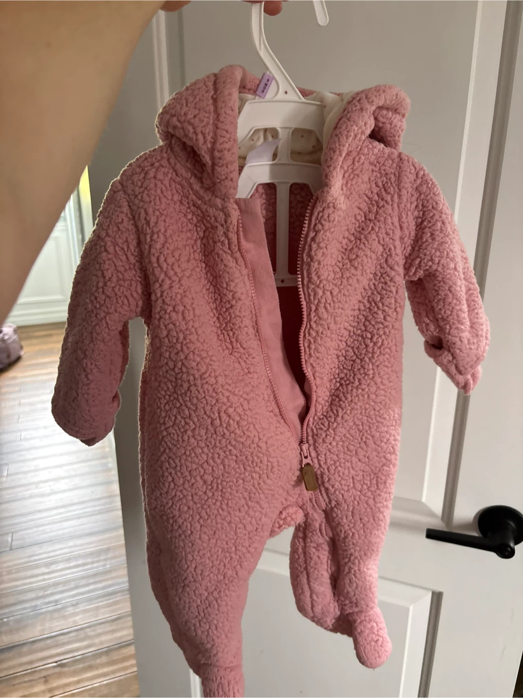 I have a Carter's baby jacket in size 9M. It's in great condition and ready for a new home! It has a hood and is perfect for keeping your little one warm and cozy.