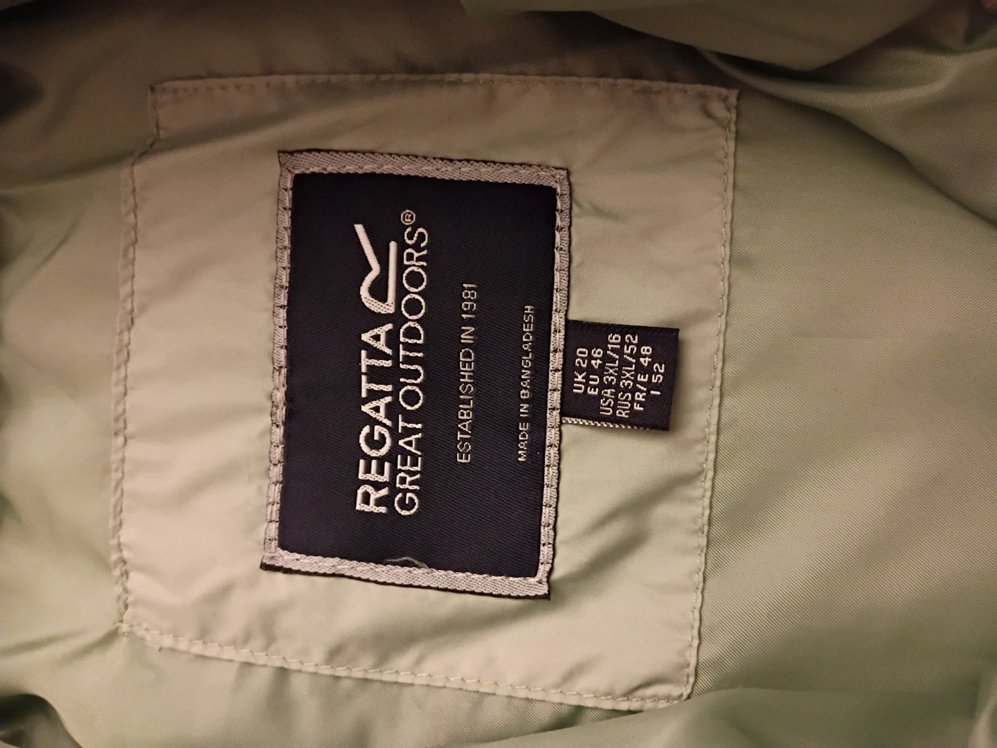 Selling a Regatta Great Outdoors puffer jacket! It's a lovely light green color and in great condition. The size is US 3XL/52.